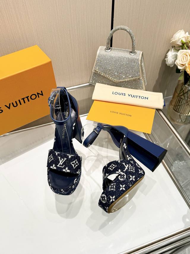 最新L家最新巴黎走秀款凉鞋、独家款、工厂P批P: 、完美楦型+防水台设计、高贵气质、走路不累脚、原版倒模楦型,极致1:1形体,高端品质、进口高端面料呈现出精致质感! 面料:经典老花 进口小羊皮 牛仔布 内里:优质柔软羊皮里 垫脚:进口山羊皮 开模定制A级高密私模大底,奢华包装! 3.5公分水台+12公分面皮包跟 码数:35-40、 34.40.41定制不退换
