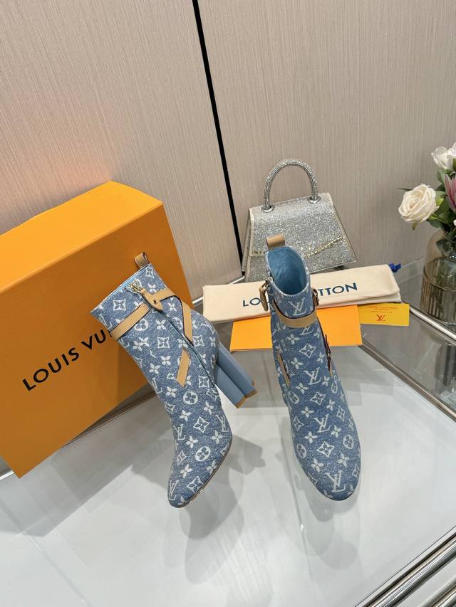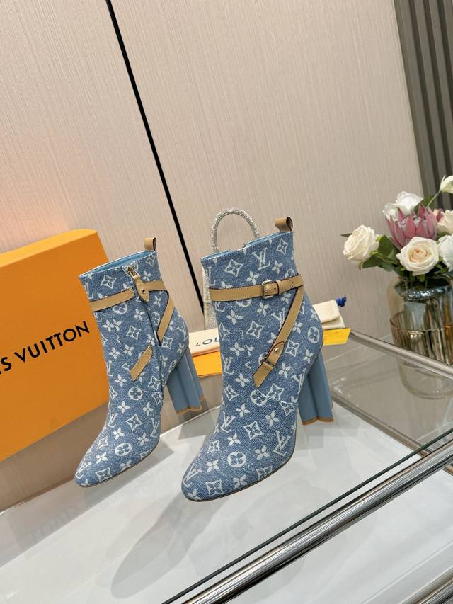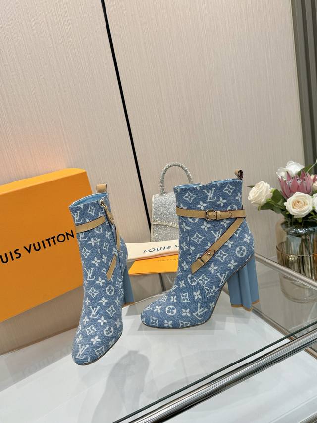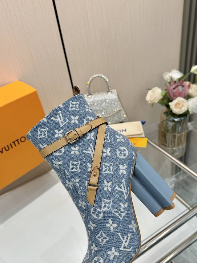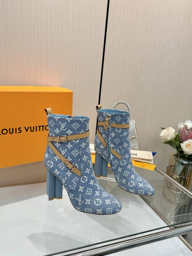 最新L家最新秋冬官网系列走秀款6寸短靴、同步更新、工厂P批P: 、完美楦型、Lv新元素带子扣子油边、工艺复杂、梅花跟设计、尽显高贵气质、原版倒模楦型,极致1:1形体,高端品质、进口高端面料呈现出精致质感! 面料:进口小牛皮 老花皮 牛仔布 内里:优质柔软羊皮里 垫脚:进口羊皮里 开模定制A级高密私模大底,奢华包装! 9.5梅花跟面皮包跟、 码数:35-40、 34.40.41定制不退换