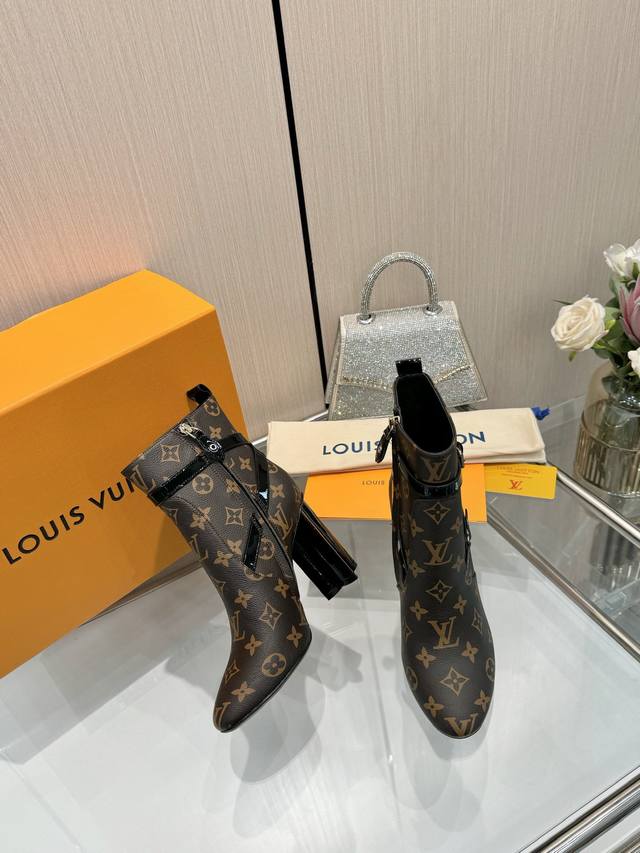 / 最新L家最新秋冬官网系列走秀款6寸短靴、同步更新、工厂P批P: 、完美楦型、Lv新元素带子扣子油边、工艺复杂、梅花跟设计、尽显高贵气质、原版倒模楦型,极致1:1