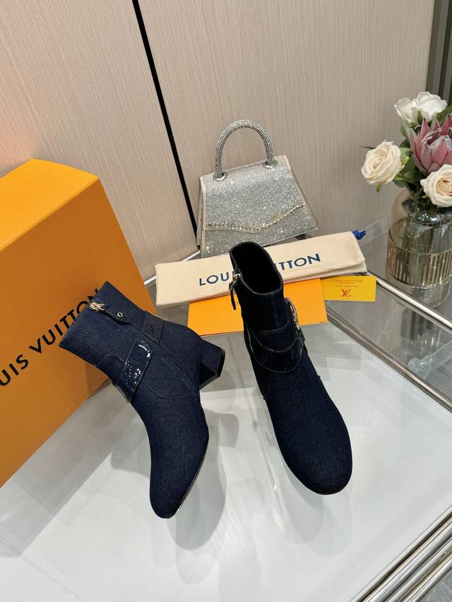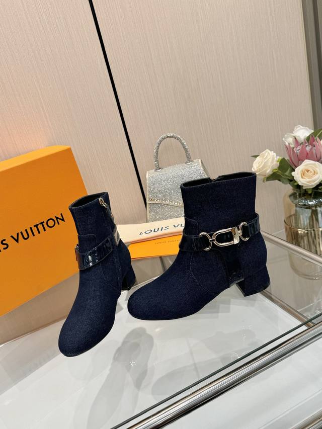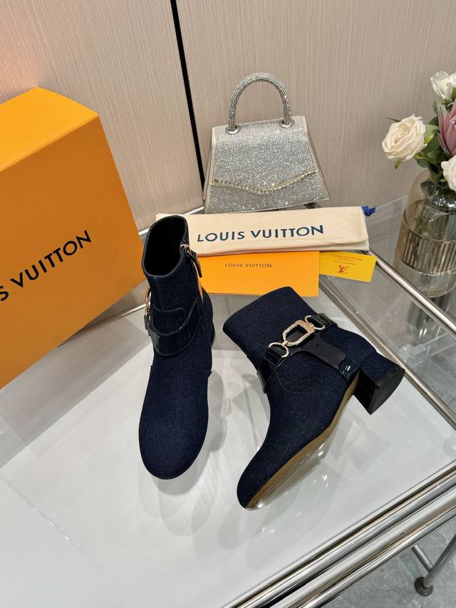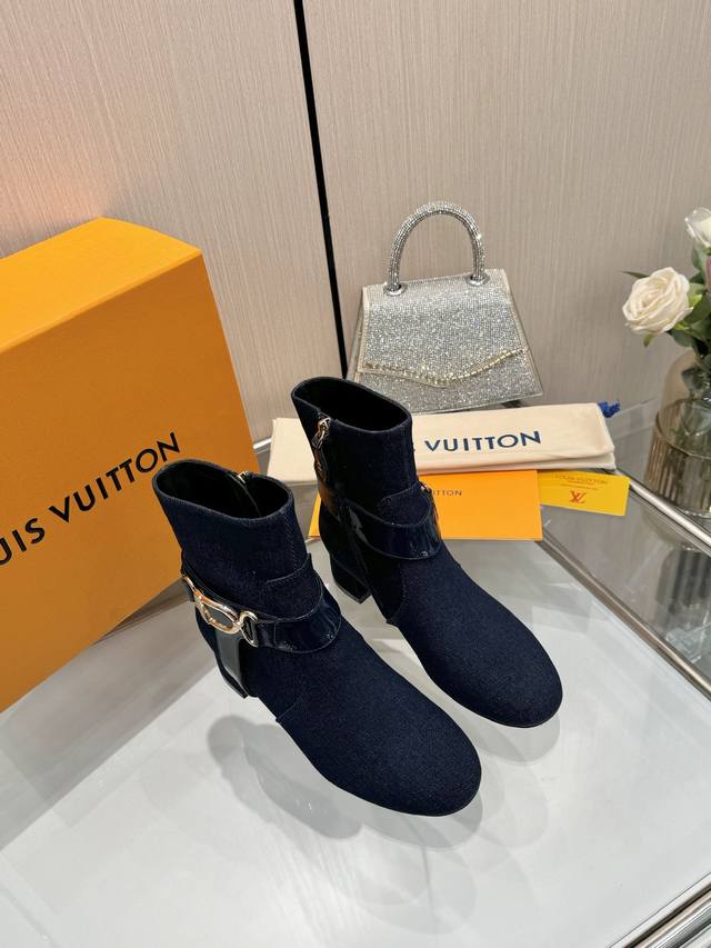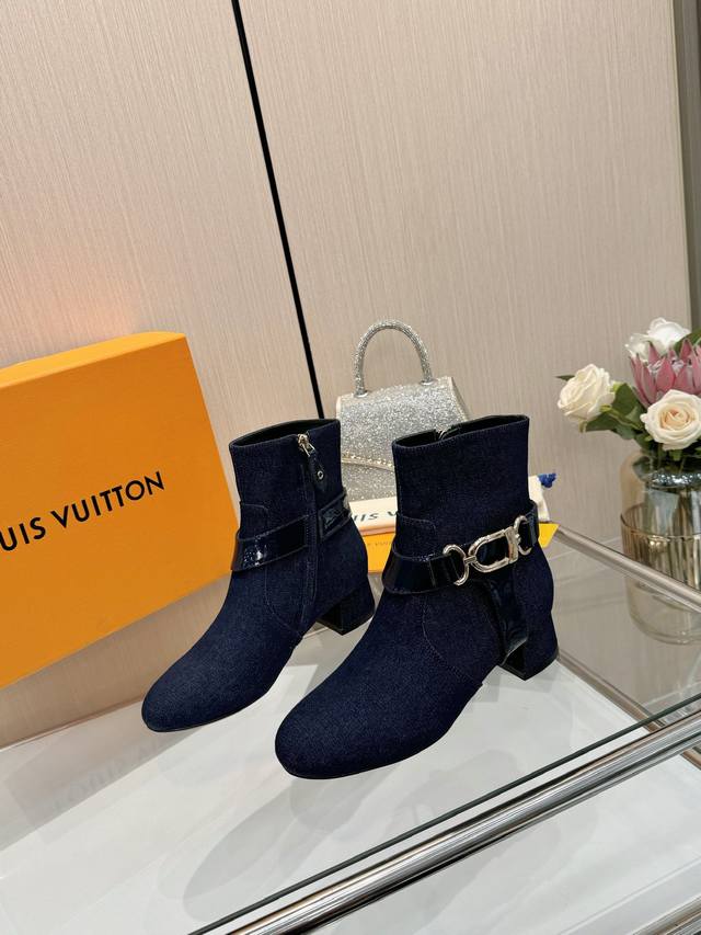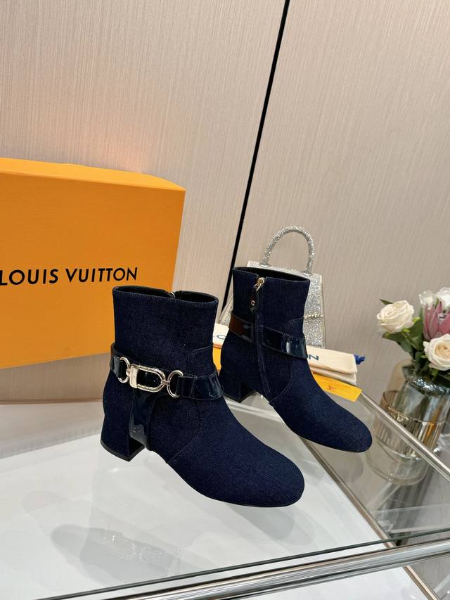 最新L家秋冬最新走秀款短靴、工厂P批P: 、完美楦型+新元素扣子、工艺极其繁琐、平底设计舒适、走路不累脚、原版倒模楦型,极致1:1形体,高端品质、进口高端面料呈现出精致质感! 面料:经典老花 牛仔布 进口小牛皮 进口牛漆皮 内里:优质柔软羊皮里 垫脚:进口山羊皮 开模定制A级高密私模大底、 4公分面皮包跟 35-40、 34.40.41定制不退换