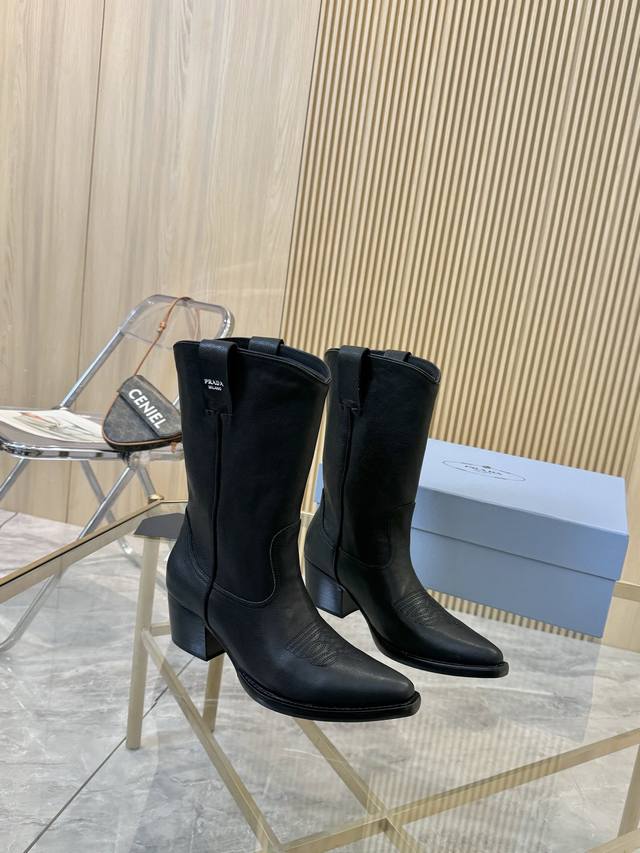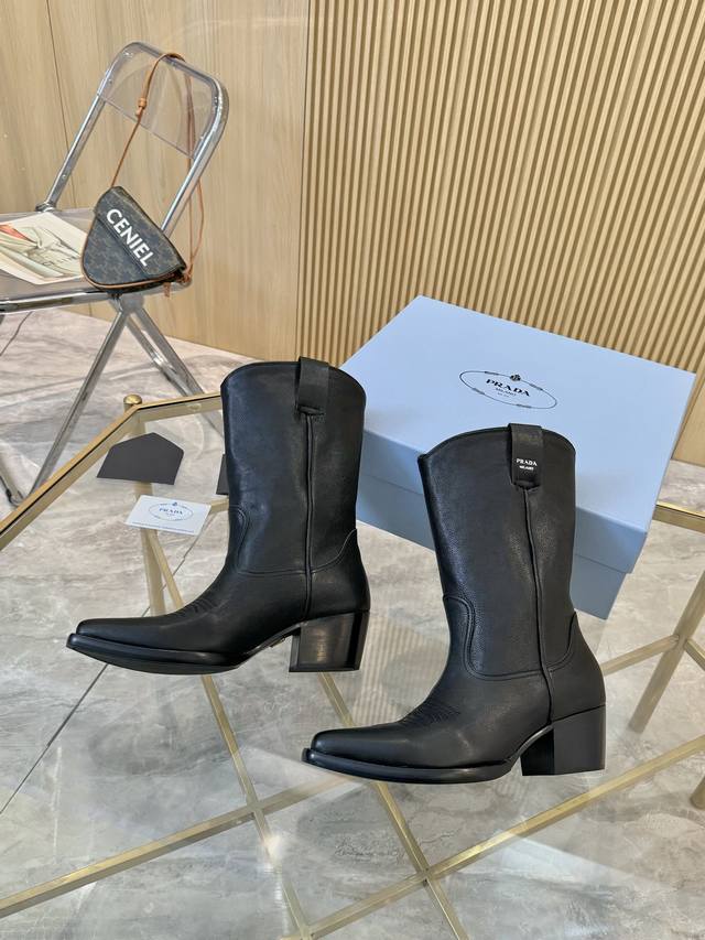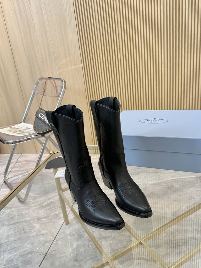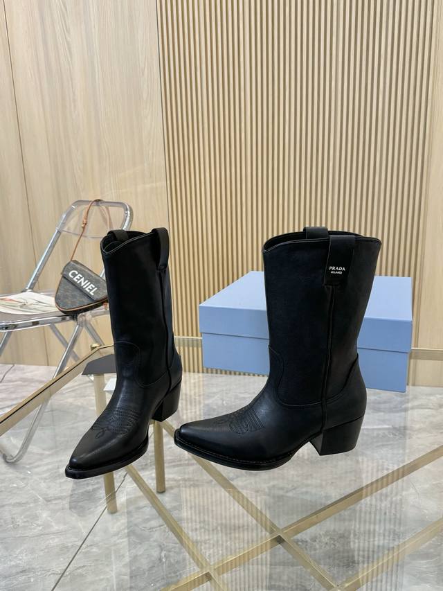 / 橡胶底 皮底 顶奢版本“Prada 普拉达”经典尖头靴 Prada能在重要场合用得上了,清新风带点小贵气的感觉,上脚非常完美显腿瘦气质这块刚好拿捏,穿搭配上此鞋