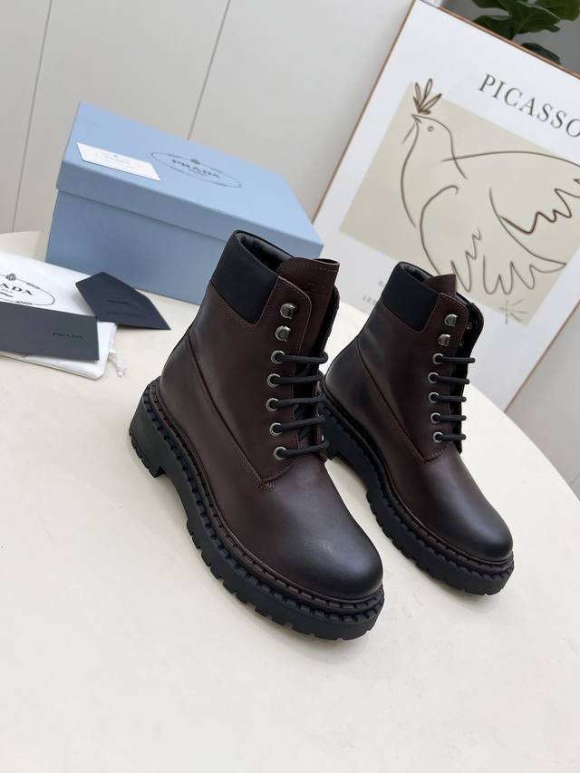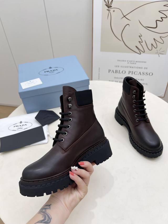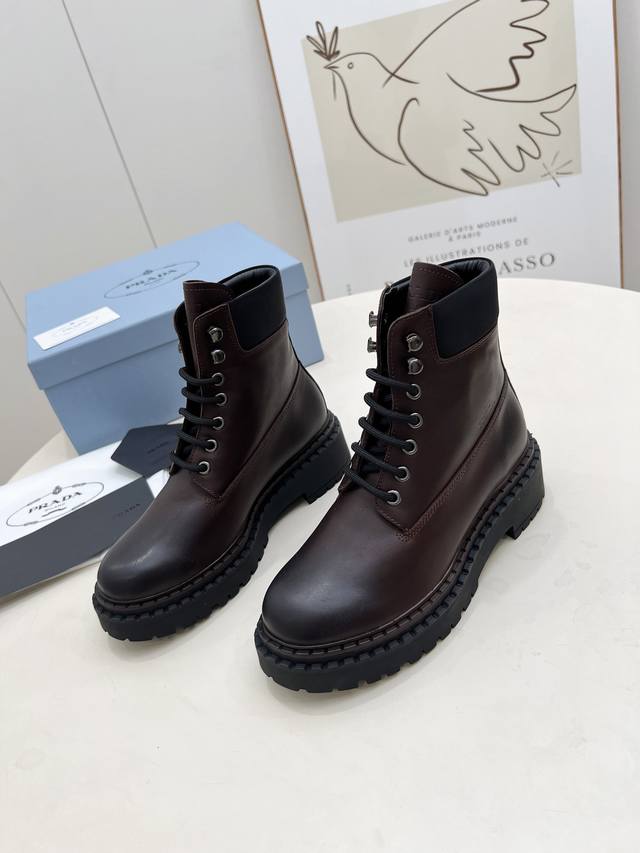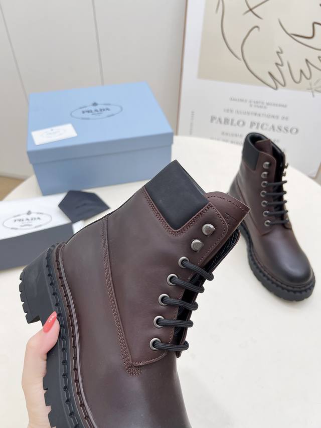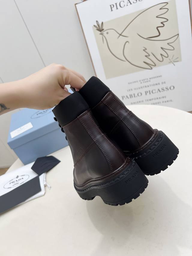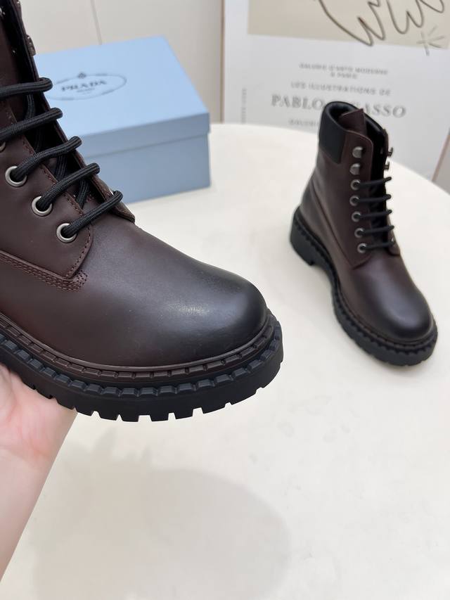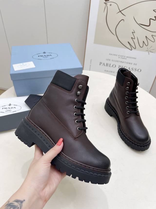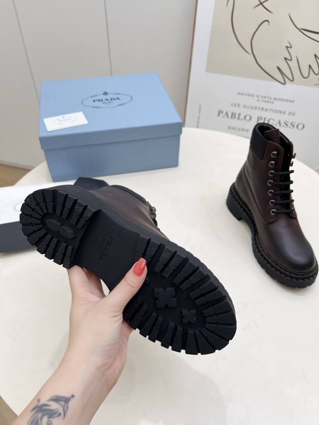 / 橡胶底 Sss重磅推出普拉达短靴系列Prada早秋冬T台走秀网红同款"梦造不夜城",Prada能在重要场合用得上了,清新风带点小贵气的感觉,上脚非常完美穿搭配上