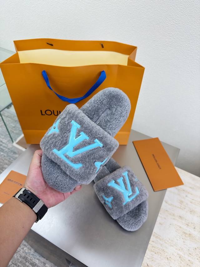 / 滴胶Logo款 进口羊羔毛拖鞋 L驴超高性价比 包装 高品质 无瑕疵 5种配色 灰色羊羔毛 滴胶Logo Lv 打造 使得 Lv 仍能为创作者、青年玩家,提供惊