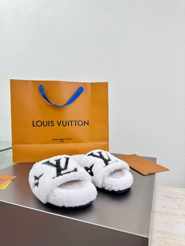 / 滴胶Logo款 进口羊羔毛拖鞋 L驴超高性价比 包装 高品质 无瑕疵 5种配色 白色羊羔毛 滴胶Logo Lv 打造 使得 Lv 仍能为创作者、青年玩家,提供惊