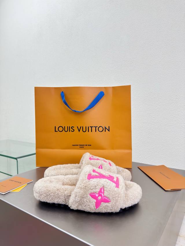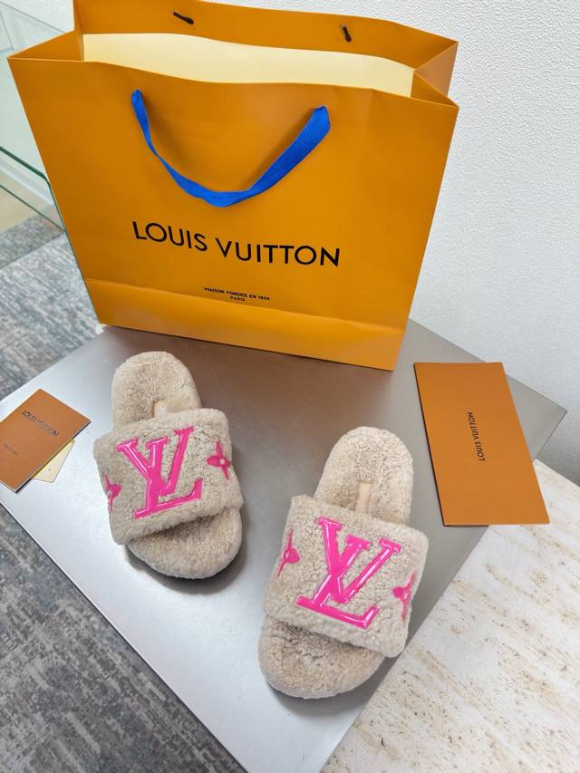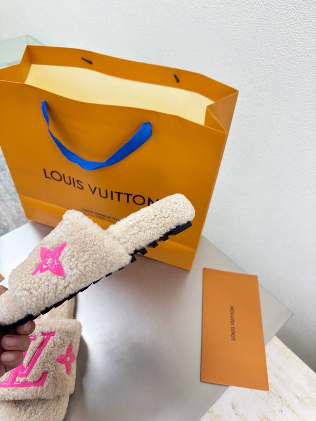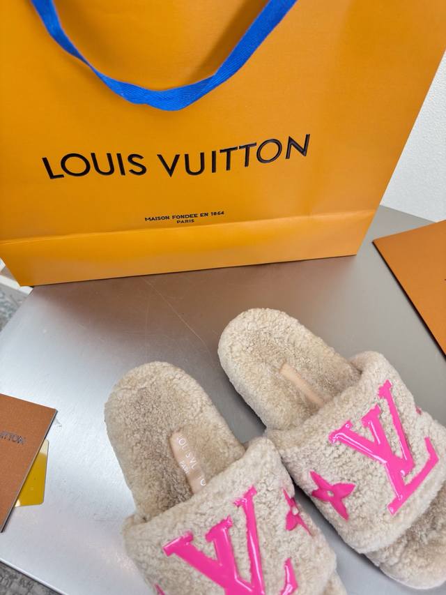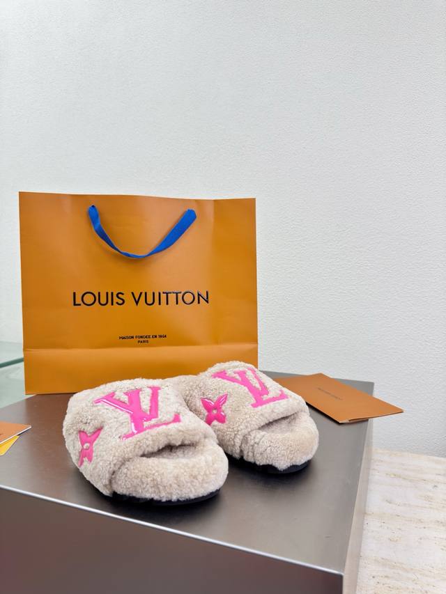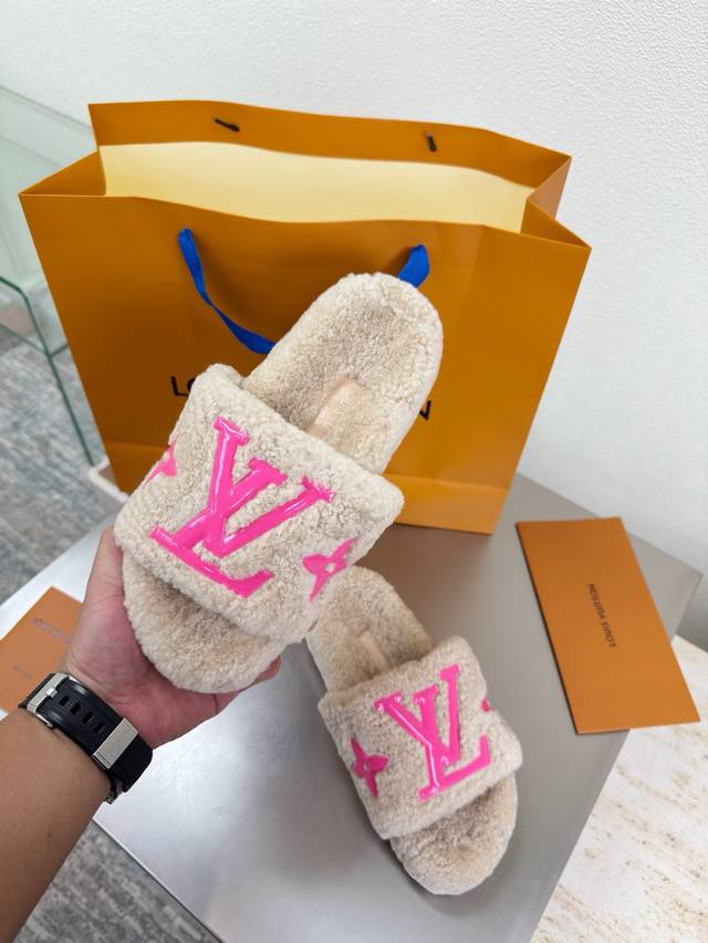 / 滴胶Logo款 进口羊羔毛拖鞋 L驴超高性价比 包装 高品质 无瑕疵 5种配色 驼色羊羔毛 滴胶Logo Lv 打造 使得 Lv 仍能为创作者、青年玩家,提供惊