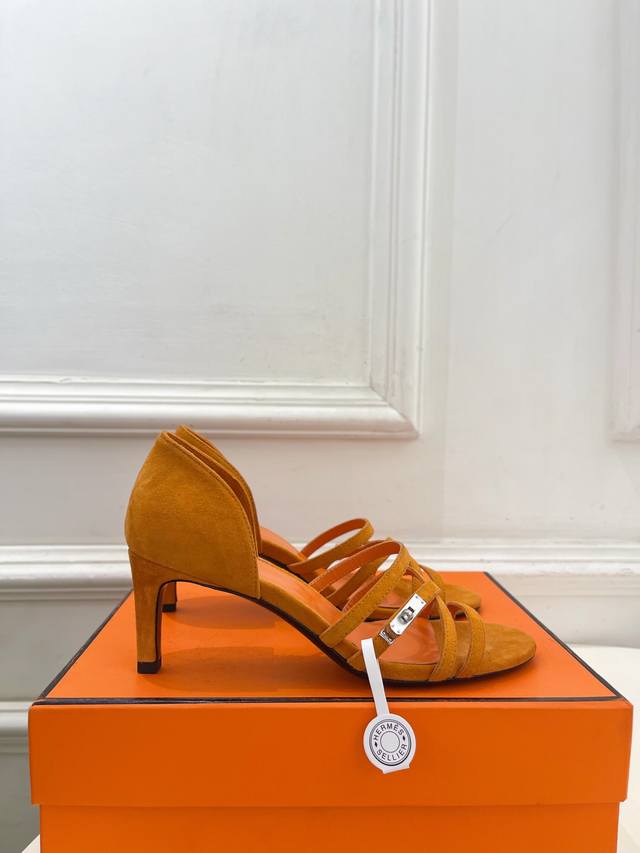 爱玛仕 25 2025秋冬新品 专柜新款 经典Kelly扣 Lipstick 高跟凉鞋系列 鞋面:原版特定麂皮 内里:进口混种羊皮 大底:原版意大利真皮大底 跟