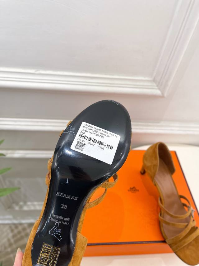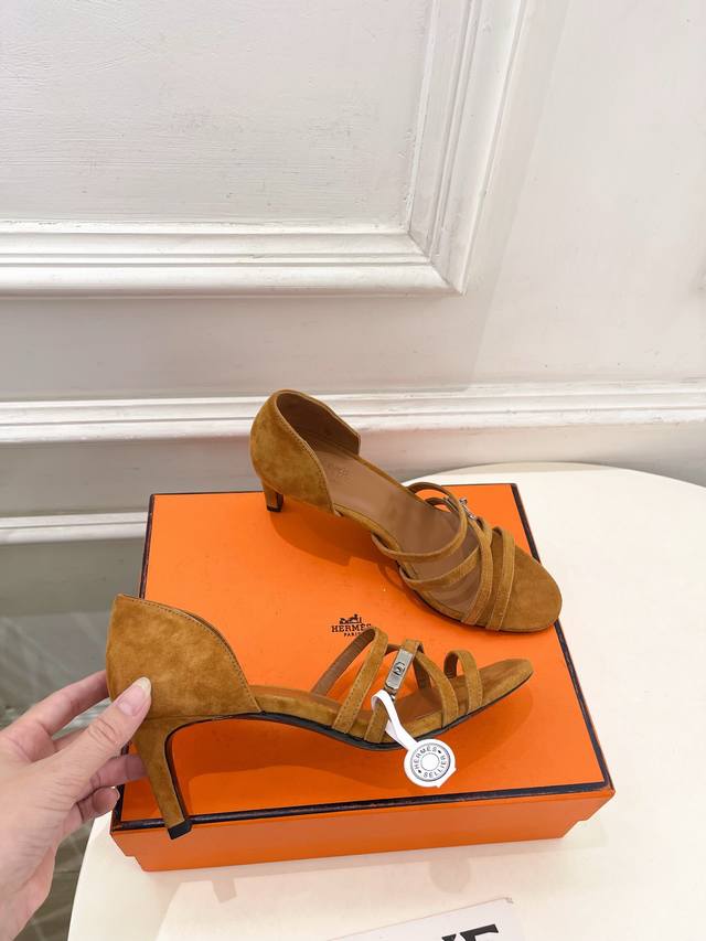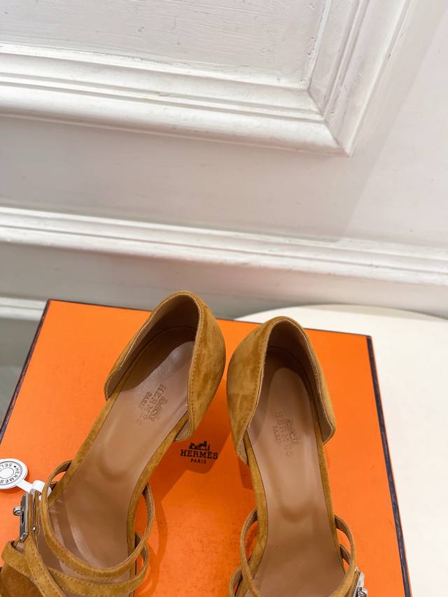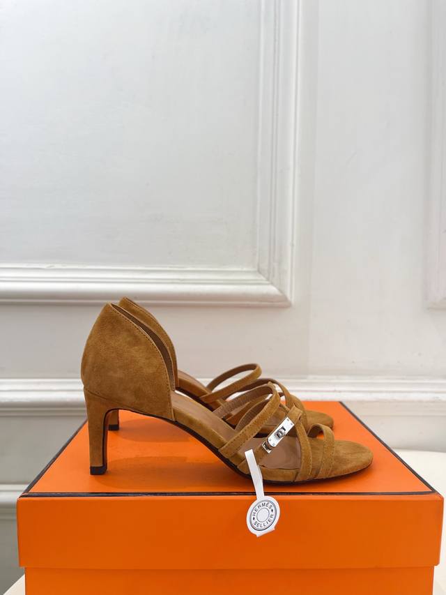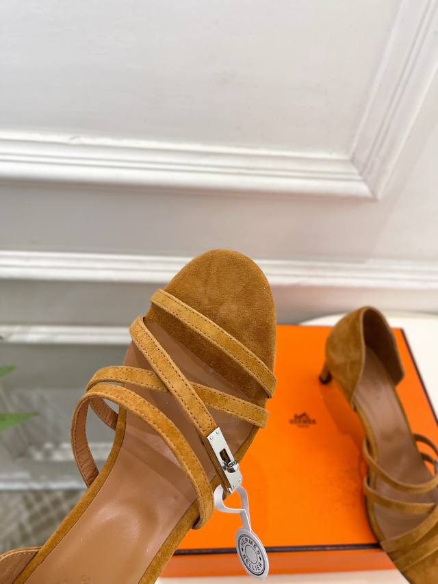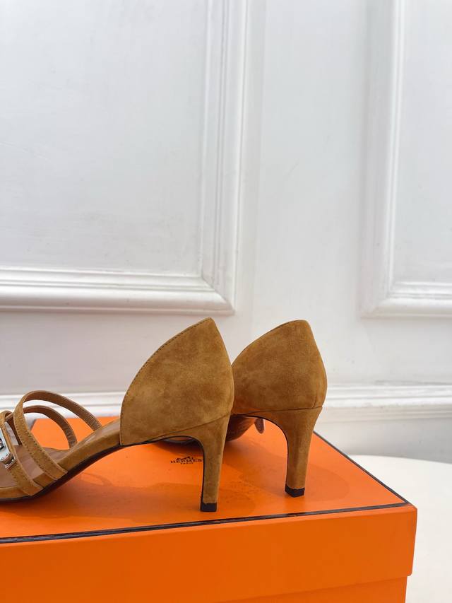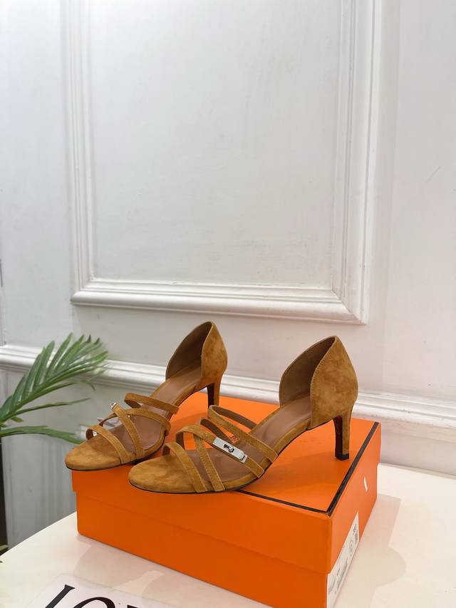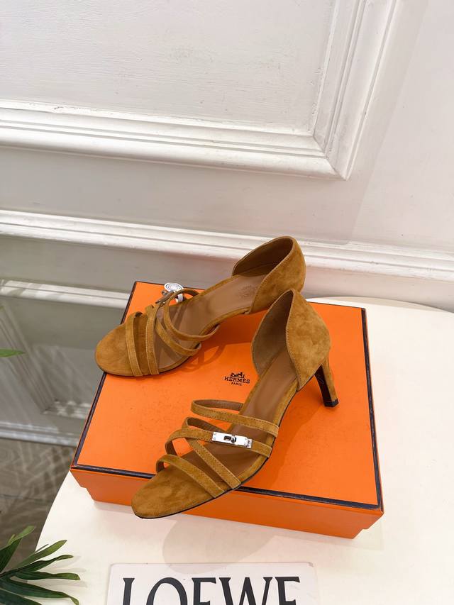 爱玛仕 25 2025秋冬新品 专柜新款 经典Kelly扣 Lipstick 高跟凉鞋系列 鞋面:原版特定麂皮 内里:进口混种羊皮 大底:原版意大利真皮大底 跟