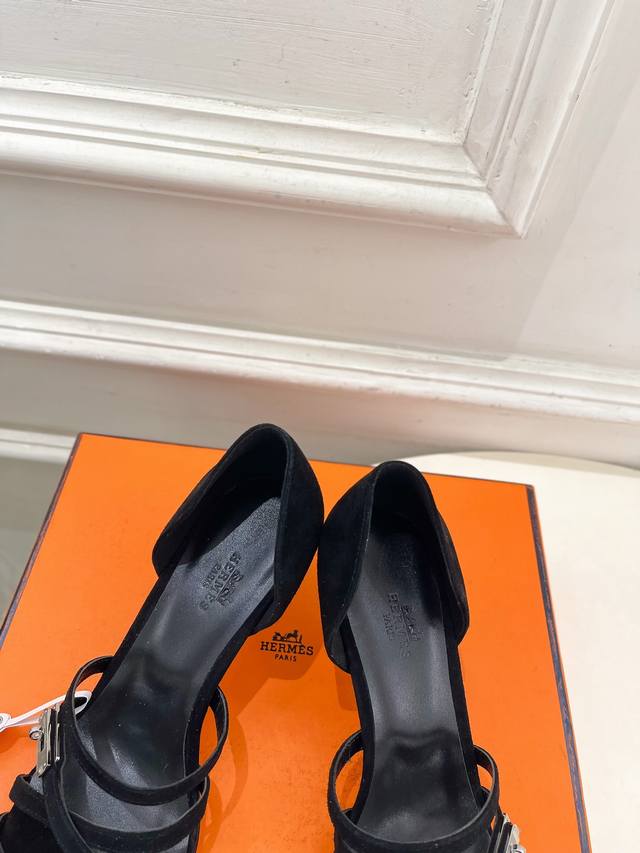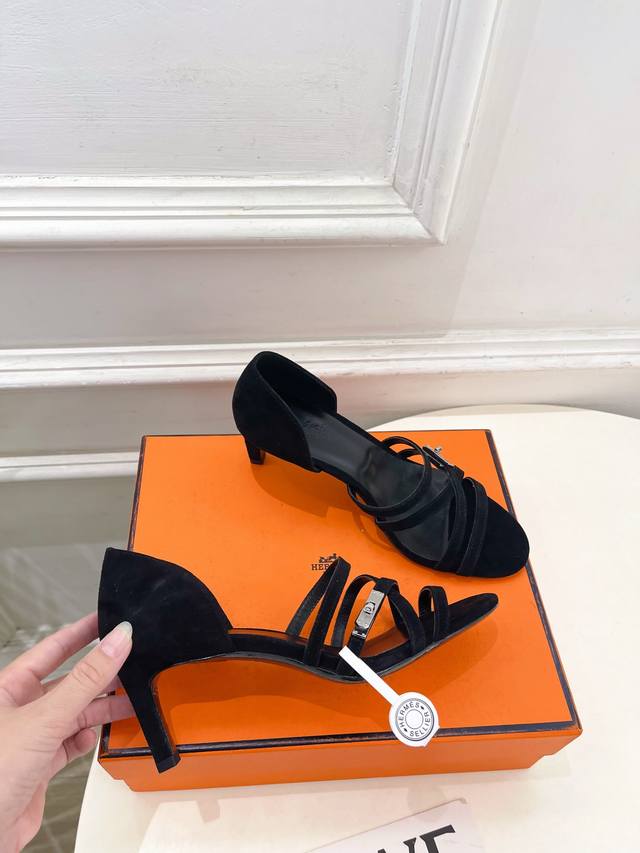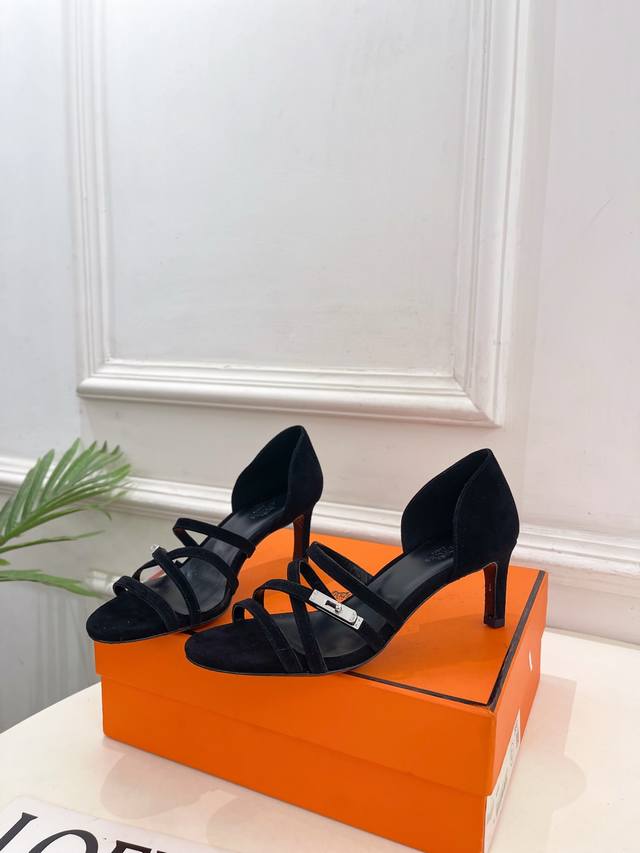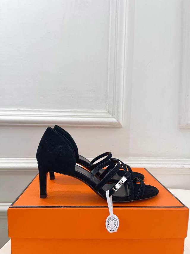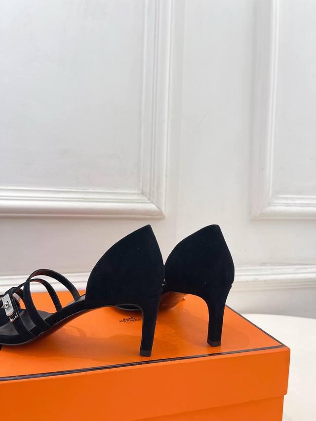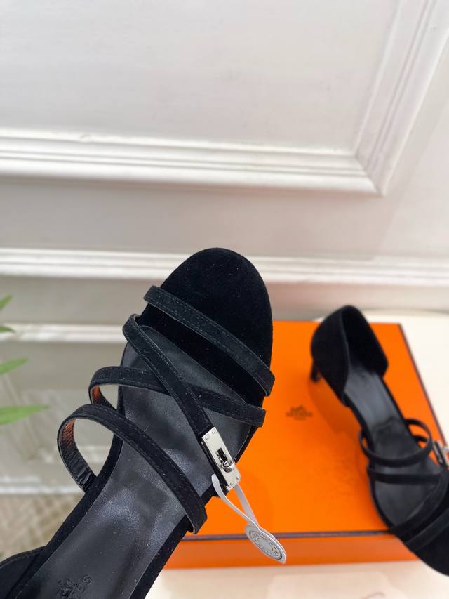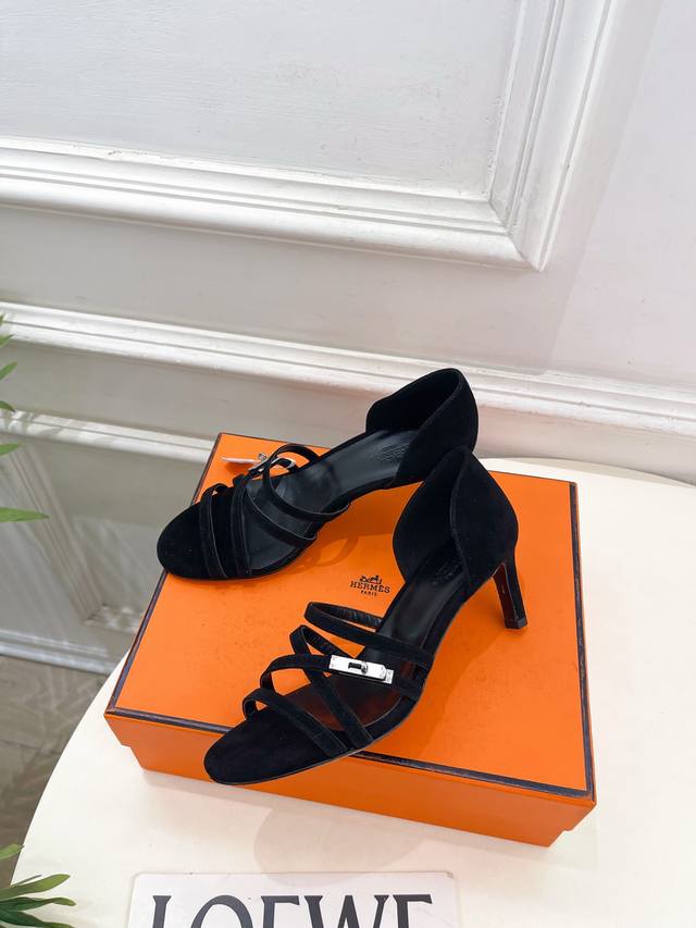 爱玛仕 25 2025秋冬新品 专柜新款 经典Kelly扣 Lipstick 高跟凉鞋系列 鞋面:原版特定麂皮 内里:进口混种羊皮 大底:原版意大利真皮大底 跟