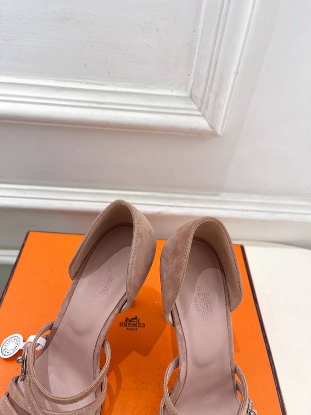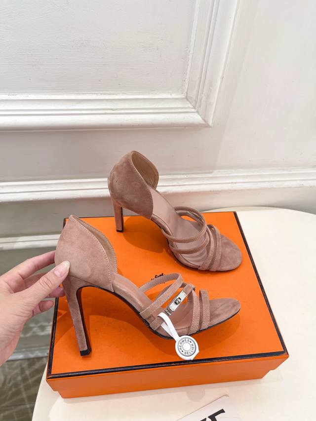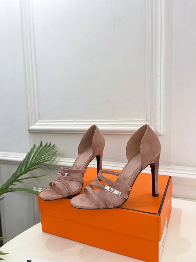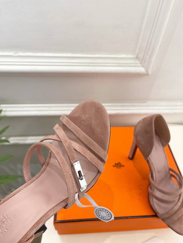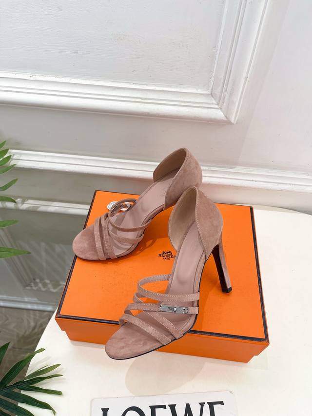 爱玛仕 25 2025秋冬新品 专柜新款 经典Kelly扣 Lipstick 高跟凉鞋系列 鞋面:原版特定麂皮 内里:进口混种羊皮 大底:原版意大利真皮大底 跟