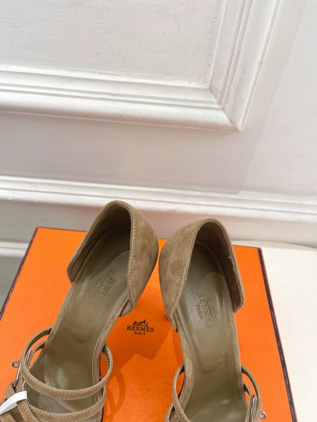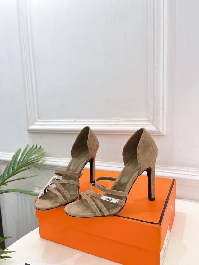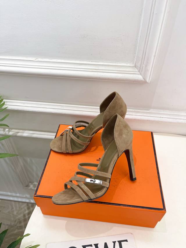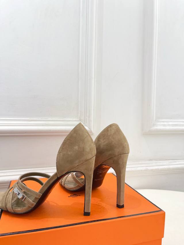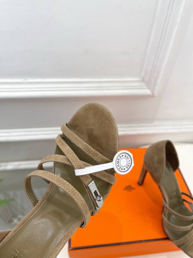 爱玛仕 25 2025秋冬新品 专柜新款 经典Kelly扣 Lipstick 高跟凉鞋系列 鞋面:原版特定麂皮 内里:进口混种羊皮 大底:原版意大利真皮大底 跟