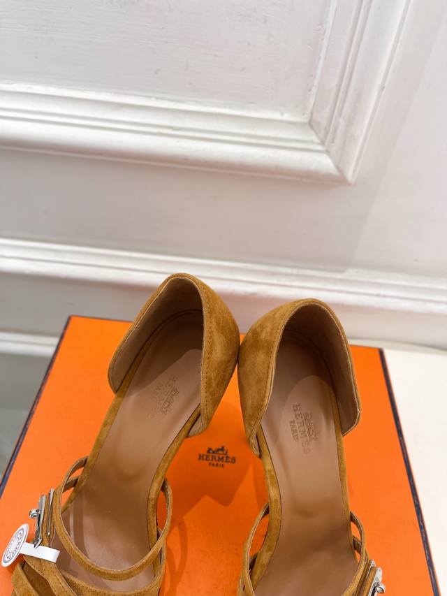 爱玛仕 25 2025秋冬新品 专柜新款 经典Kelly扣 Lipstick 高跟凉鞋系列 鞋面:原版特定麂皮 内里:进口混种羊皮 大底:原版意大利真皮大底 跟高:6.5Cm 10.5Cm 鞋码: 35-39 40.41定做不退换 出厂价Pp: