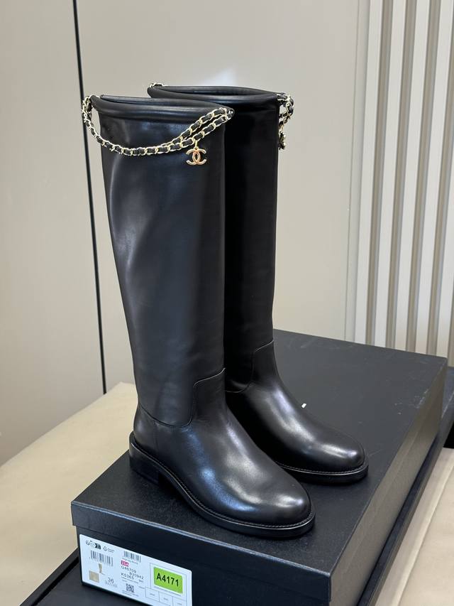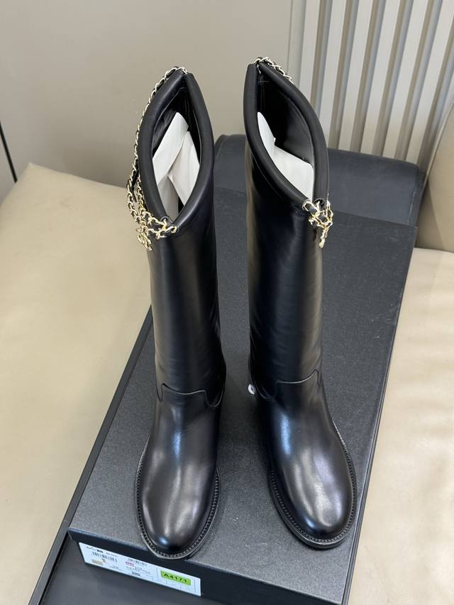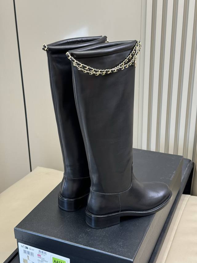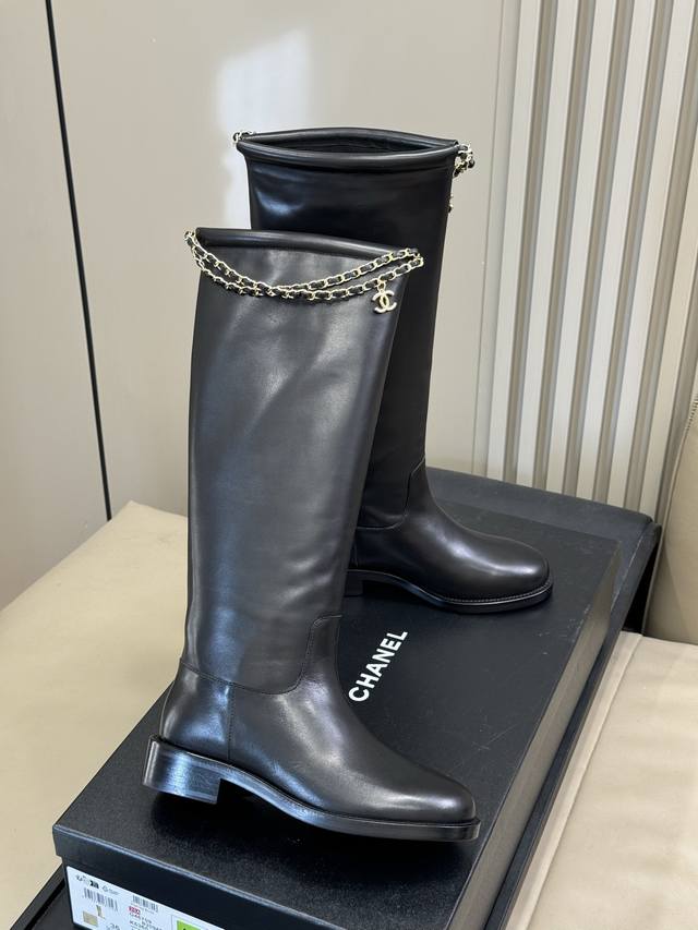 牛京 牛皮 Chanel 25B New Arrival~ 小香25B 长靴新品 基础款短靴搭配了经典链条焕发心意 精致好看啊! 好穿百搭 不挑人 牛皮鞋面,意