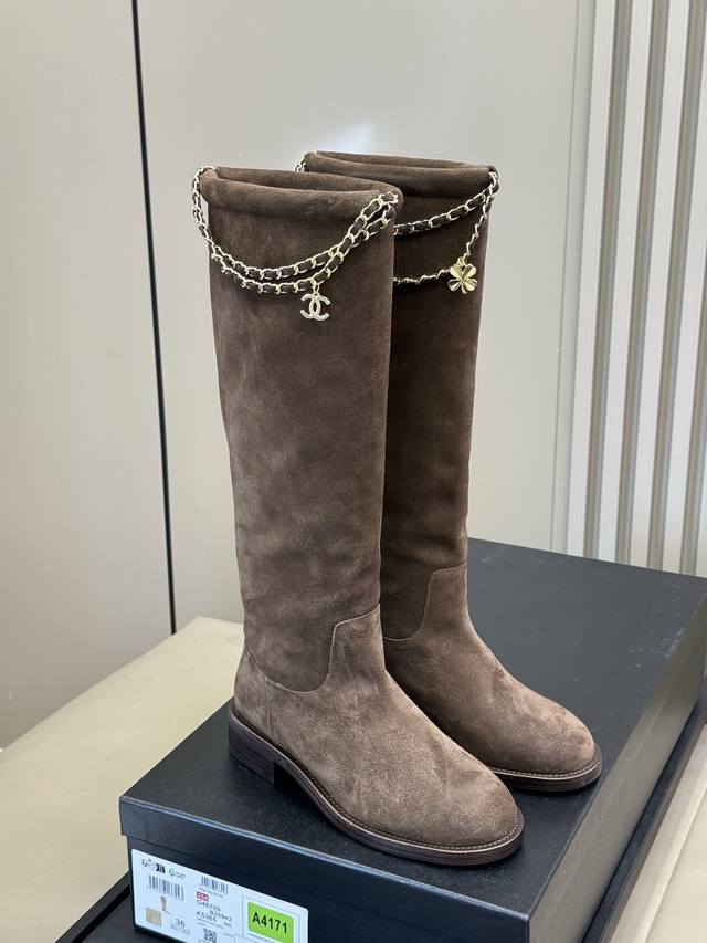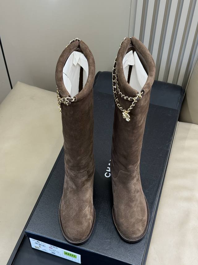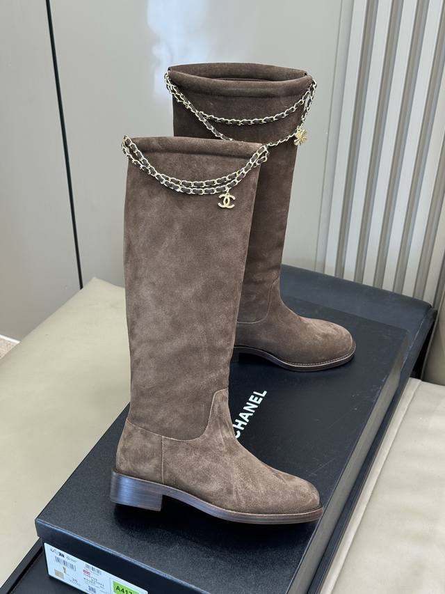 / 牛京 牛皮 Chanel 25B New Arrival~ 小香25B 长靴新品 基础款短靴搭配了经典链条焕发心意 精致好看啊! 好穿百搭 不挑人 牛皮鞋面,意