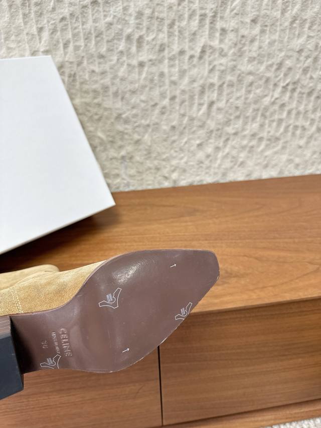 牛京 G299 Celine 赛琳 25Ss秋冬新品 复古粗跟 切尔西 尖头 铁扣短靴 塞琳这一季好看的款式真的是很多 比如这款军靴就很机车风 重点夸夸靴筒设计