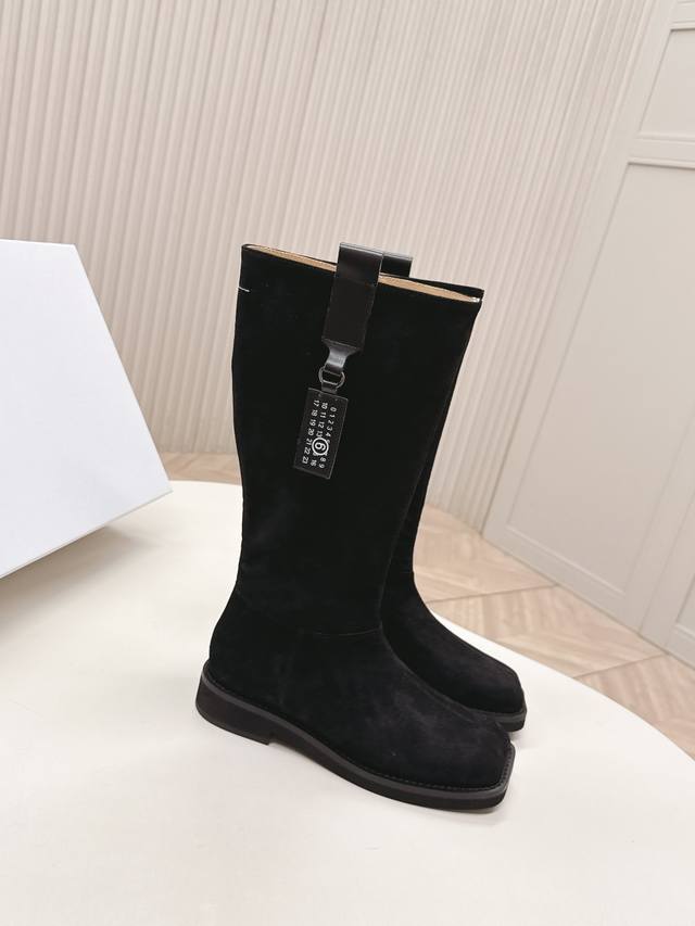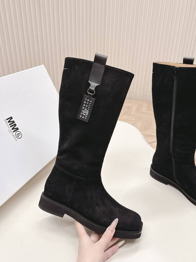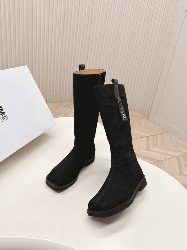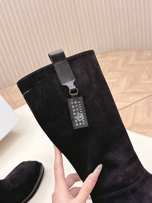 / 牛猄面出 Mm6 25冬最新款高筒靴 超好看,整体设计和做工用料,不仅让它的质感超级棒,而且穿着舒适度也是一流的,经典斜方头搭配细高跟,气质性感 上脚非常修饰腿