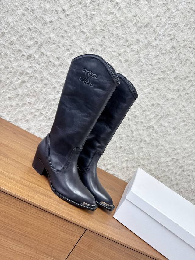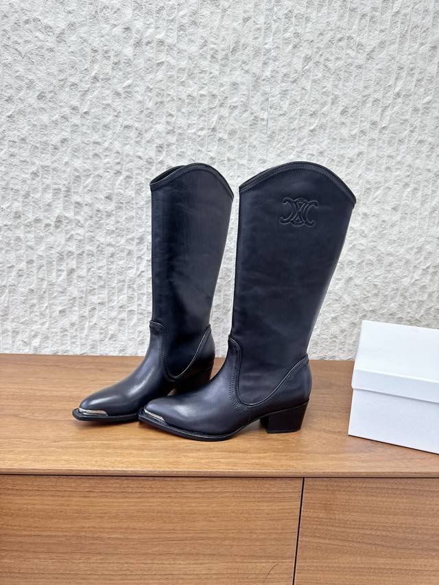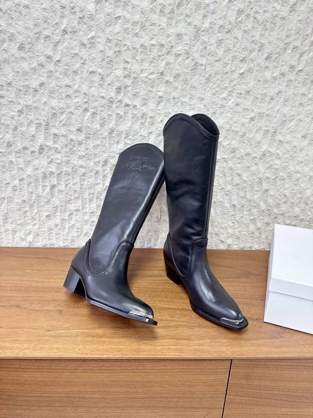 / 牛皮 G299 Celine 赛琳 25Ss秋冬新品 复古粗跟 切尔西 尖头 铁扣长靴 塞琳这一季好看的款式真的是很多 比如这款军靴就很机车风 重点夸夸靴筒设计