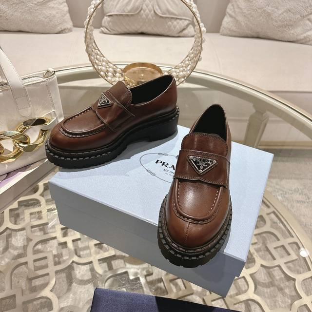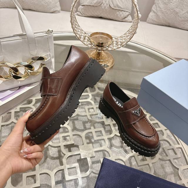 男款+10 普拉达 Prada 情侣款 普拉达 Prada 乐福鞋顶级版本增高小皮鞋火爆登场,原板复制!油边工艺~完美无瑕!采用高级感满满的开边珠小牛皮做鞋面,真正做到最顶级,请各位看清细节认准品质。厚底松糕鞋,跟高6Cm,防滑鞋底,带Logo标识细节,低调致敬品牌设计传承,打造属于完美的风格。炸街款又酷又飒 C位时髦穿搭经典鞋型,呈现出精致质感!拥有着高档气质! 面料:A级开边珠牛皮 饰扣:原板开模 内里:柔软丝绸牛皮 垫脚:柔软丝绸牛皮 包装 :全套原版礼品包装 码数:女35-40# 男39-45#