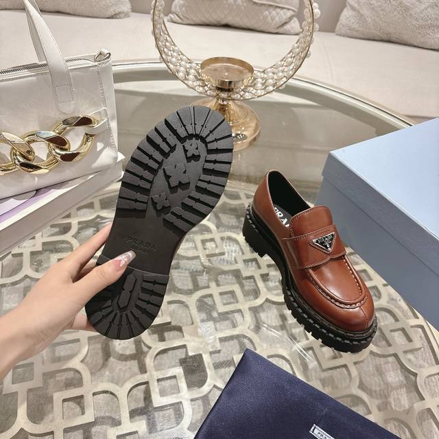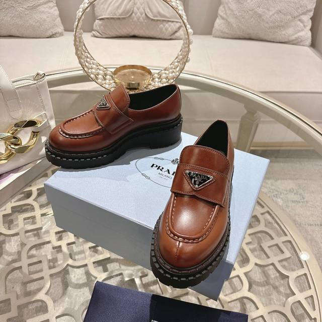男款+10 普拉达 Prada 情侣款 普拉达 Prada 乐福鞋顶级版本增高小皮鞋火爆登场,原板复制!油边工艺~完美无瑕!采用高级感满满的开边珠小牛皮做鞋面,真正做到最顶级,请各位看清细节认准品质。厚底松糕鞋,跟高6Cm,防滑鞋底,带Logo标识细节,低调致敬品牌设计传承,打造属于完美的风格。炸街款又酷又飒 C位时髦穿搭经典鞋型,呈现出精致质感!拥有着高档气质! 面料:A级开边珠牛皮 饰扣:原板开模 内里:柔软丝绸牛皮 垫脚:柔软丝绸牛皮 包装 :全套原版礼品包装 码数:女35-40# 男39-45#