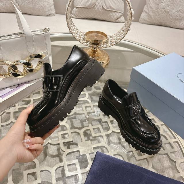 男款+10 普拉达 Prada 情侣款 普拉达 Prada 乐福鞋顶级版本增高小皮鞋火爆登场,原板复制!油边工艺~完美无瑕!采用高级感满满的开边珠小牛皮做鞋面,真正做到最顶级,请各位看清细节认准品质。厚底松糕鞋,跟高6Cm,防滑鞋底,带Logo标识细节,低调致敬品牌设计传承,打造属于完美的风格。炸街款又酷又飒 C位时髦穿搭经典鞋型,呈现出精致质感!拥有着高档气质! 面料:A级开边珠牛皮 饰扣:原板开模 内里:柔软丝绸牛皮 垫脚:柔软丝绸牛皮 包装 :全套原版礼品包装 码数:女35-40# 男39-45#