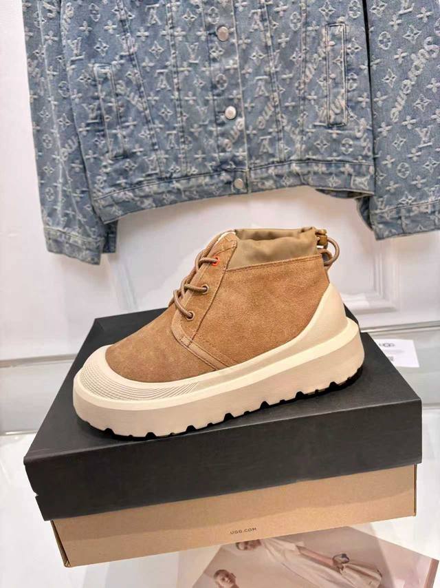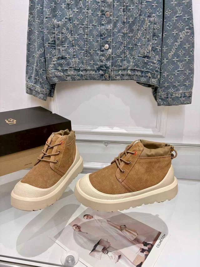 男款10 秋冬新品王一博同款.塔斯曼-高帮.厚底系带纽姆靴 男女同款 鞋面:磨砂牛皮 内里:纯羊毛 鞋底:轻翼外底 Eva拼色 明星同款热卖推荐 颜色:4色可选 尺码:女35-40 男40-45
