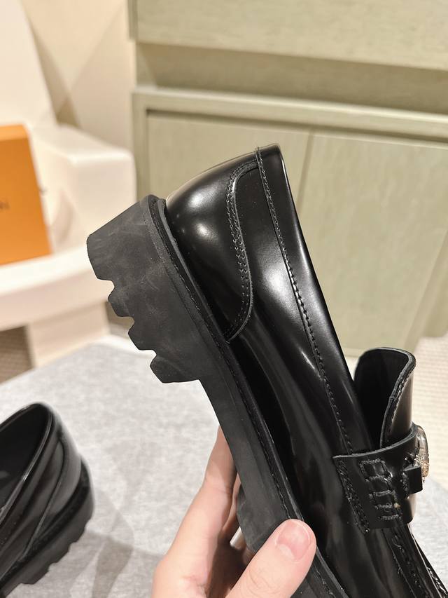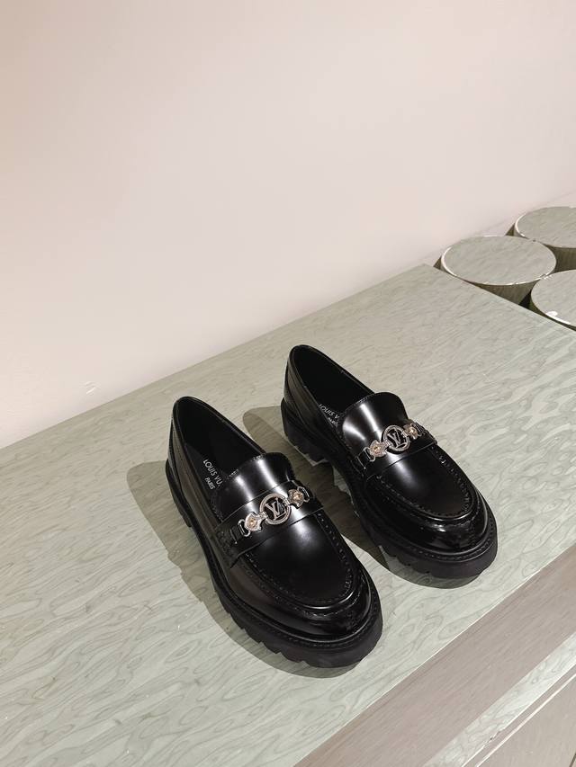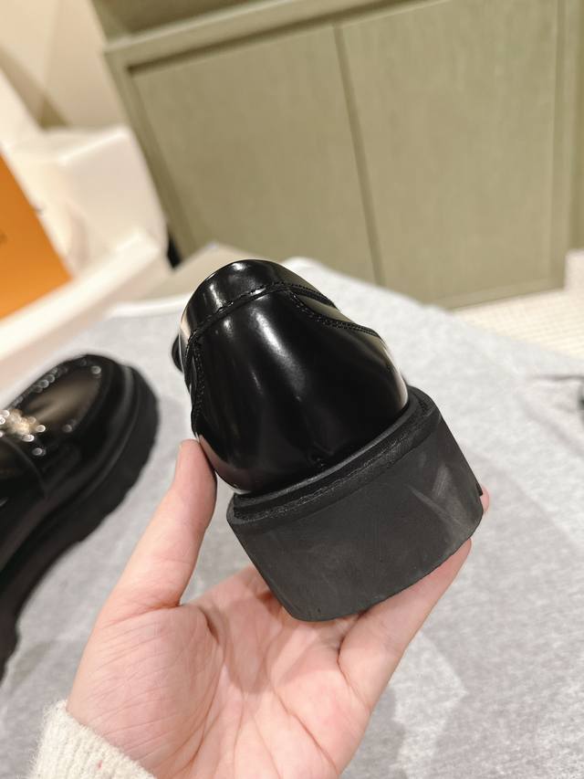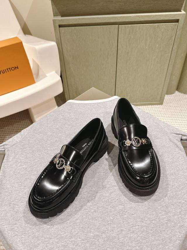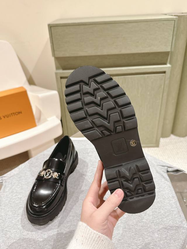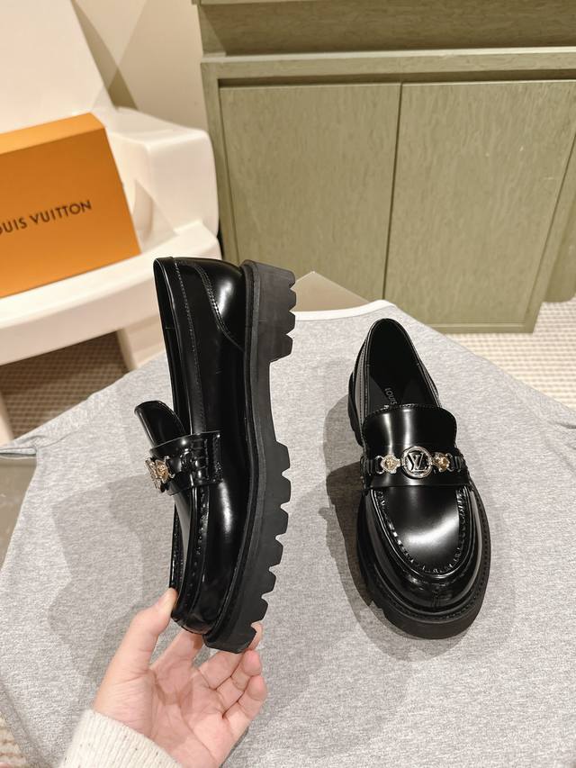 男10 224 Lv 路易威登25 S早春走秀专柜最新开边珠厚底乐福系列!代购级!一脚蹬百搭时尚英伦风!厚底增高情侣装。新年百搭款,上脚超级舒服! 面料:进口开边珠牛皮私膜五金 牛皮内里。双层加厚原版耐磨大底! 码数:女35-40 男39-45 配专柜同步礼盒包装
