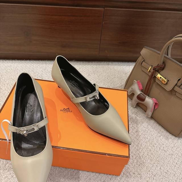 皮扣出厂价P Hermes爱马仕 Kiara 40高跟鞋 原版拆卸1:1复制 套楦 独家老师傅纯手工制作工艺 原版独家开模纯钢Kelly扣件 小尖头时尚又百搭