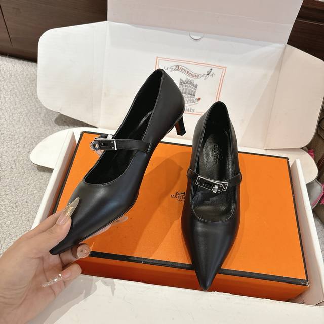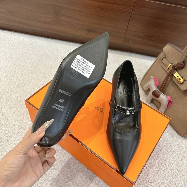 / 皮扣出厂价P Hermes爱马仕 Kiara 40高跟鞋 原版拆卸1:1复制 套楦 独家老师傅纯手工制作工艺 原版独家开模纯钢Kelly扣件 小尖头时尚又百搭