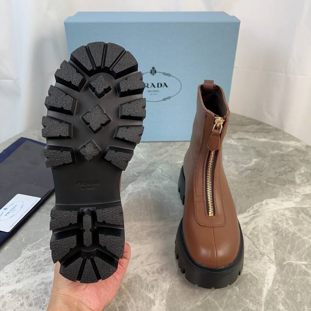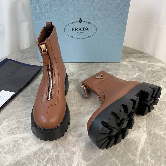 / 皮面加10 P家最新款 面:高丝光牛反绒、全粒面牛皮 里:进口小牛皮 垫:进口小牛皮 底:原版工艺大底 厚6Cm 标志性三角标,原版包装 Size:35-42
