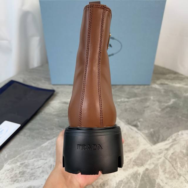 皮面加10 P家最新款 面:高丝光牛反绒、全粒面牛皮 里:进口小牛皮 垫:进口小牛皮 底:原版工艺大底 厚6Cm 标志性三角标,原版包装 Size:35-42