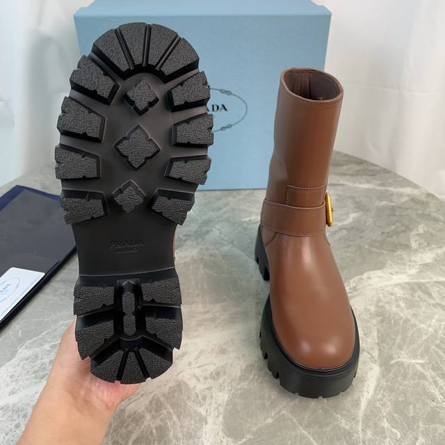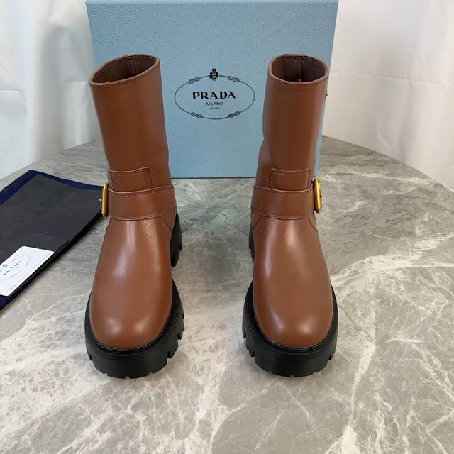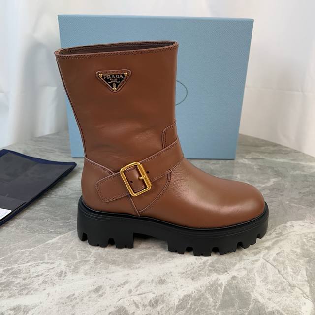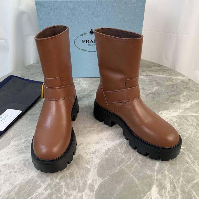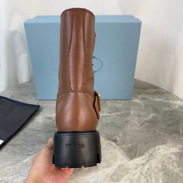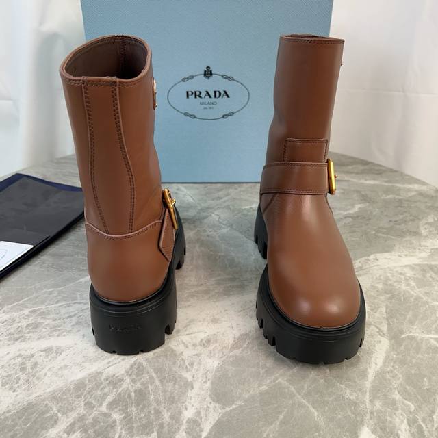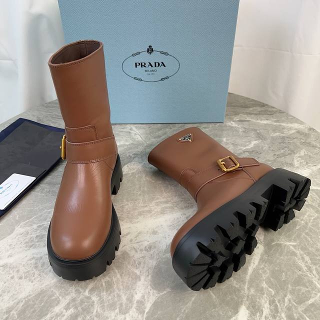 时尚从不妥协!Prada普拉达全真皮厚底擦色骑士靴,一脚蹬马丁靴震撼登场!...