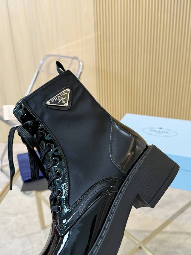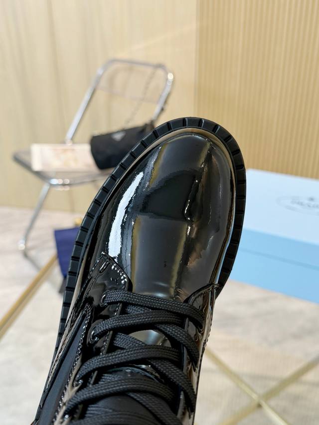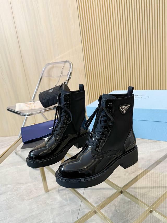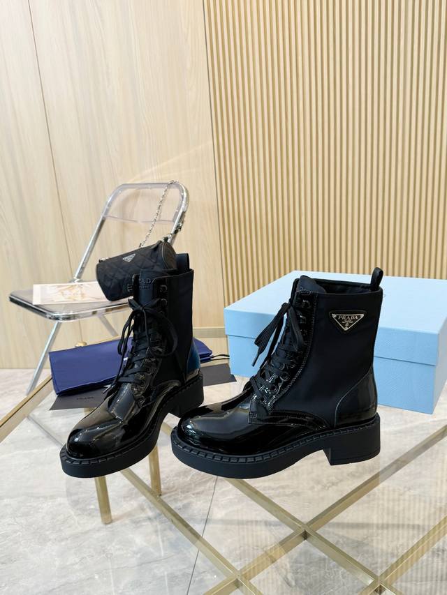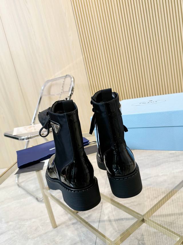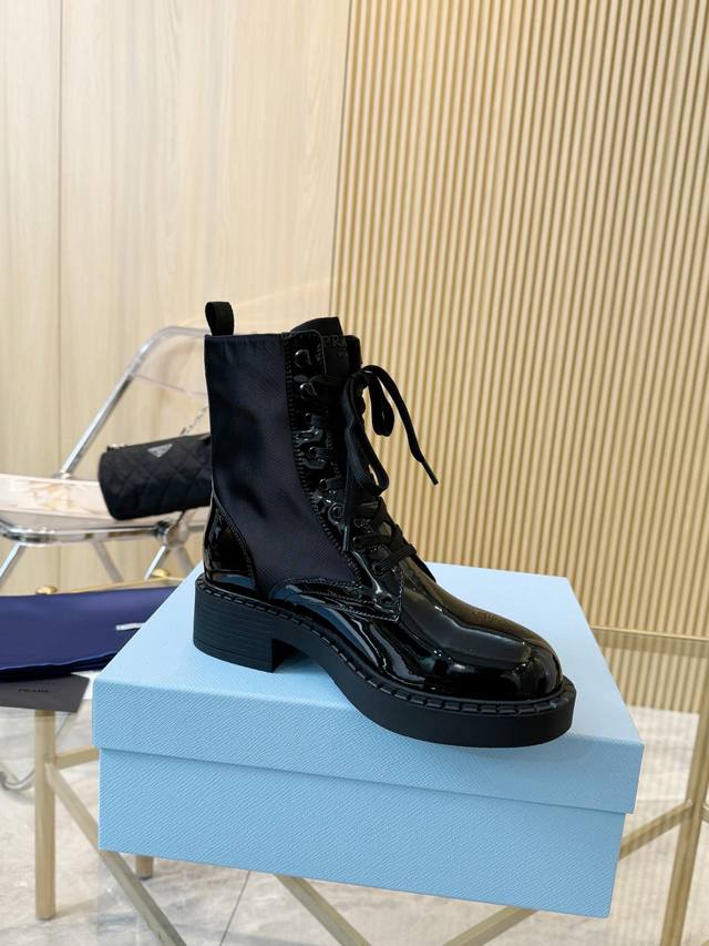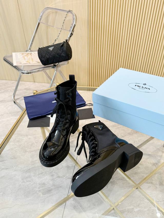 / 级顶重磅推出普拉达短靴系列 Prada早秋冬T台走秀网红同款"梦造不夜城",能在重要场合用得上了,清新风带点小贵气的感觉,上脚非常完美穿搭配上此鞋,优雅大方晶莹