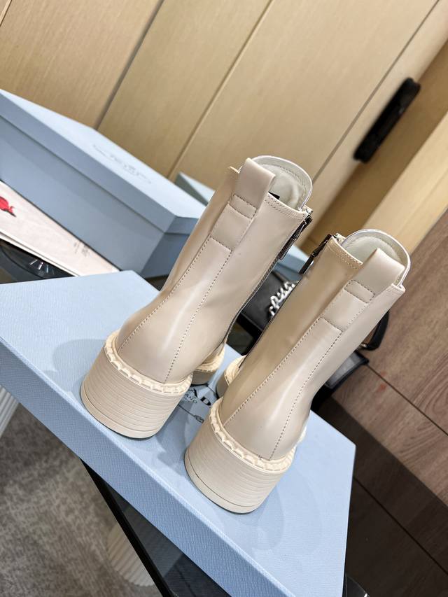 级顶 Sss重磅推出普拉达短靴系列 1 Prada早秋冬T台走秀网红同款"梦造不夜城",Prada能在重要场合用得上了,清新风带点小贵气的感觉,上脚非常完美穿搭