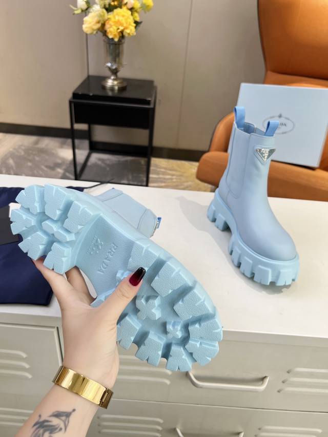 / 级顶 Sss重磅推出普拉达短靴系列 Prada早秋冬T台走秀网红同款"梦造不夜城",Prada能在重要场合用得上了,清新风带点小贵气的感觉,上脚非常完美穿搭配上