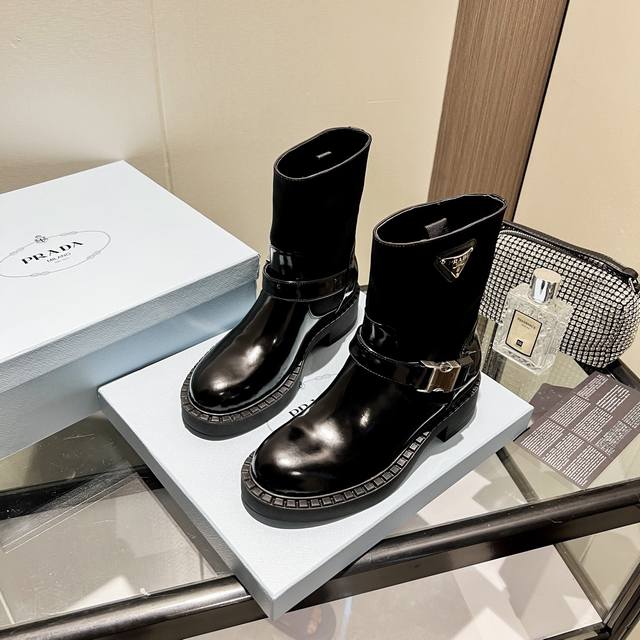 级顶 Sss重磅推出Prada普拉达短靴系列 1 早秋冬T台走秀网红同款"梦造不夜城",能在重要场合用得上了,清新风带点小贵气的感觉,上脚非常完美穿搭配上此鞋,