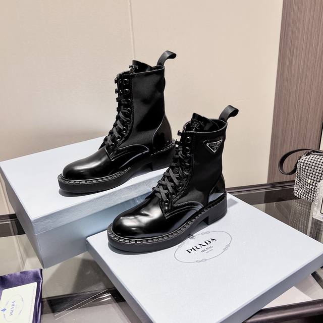 级顶 Sss重磅推出Prada普拉达短靴系列 1 早秋冬T台走秀网红同款"梦造不夜城",能在重要场合用得上了,清新风带点小贵气的感觉,上脚非常完美穿搭配上此鞋,优雅大方晶莹透剔,各种配件材质,都是独家一比一定制,做到原版离距零,整个系列都令人兴奋意和外的元素结合,不同的材质,极具有浓艺的艺术气质,让你略领Prada女孩的百变风格。 1鞋面:进口开边珠牛皮, 2内里:进口羊皮内里 3大底:意大利原版Tpu大底 4三色供应,码数35-41