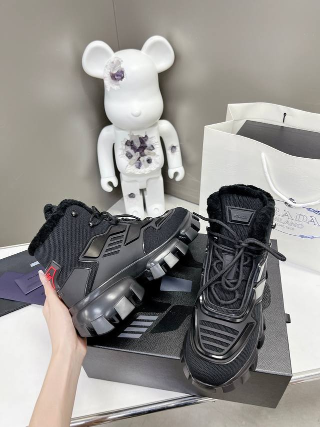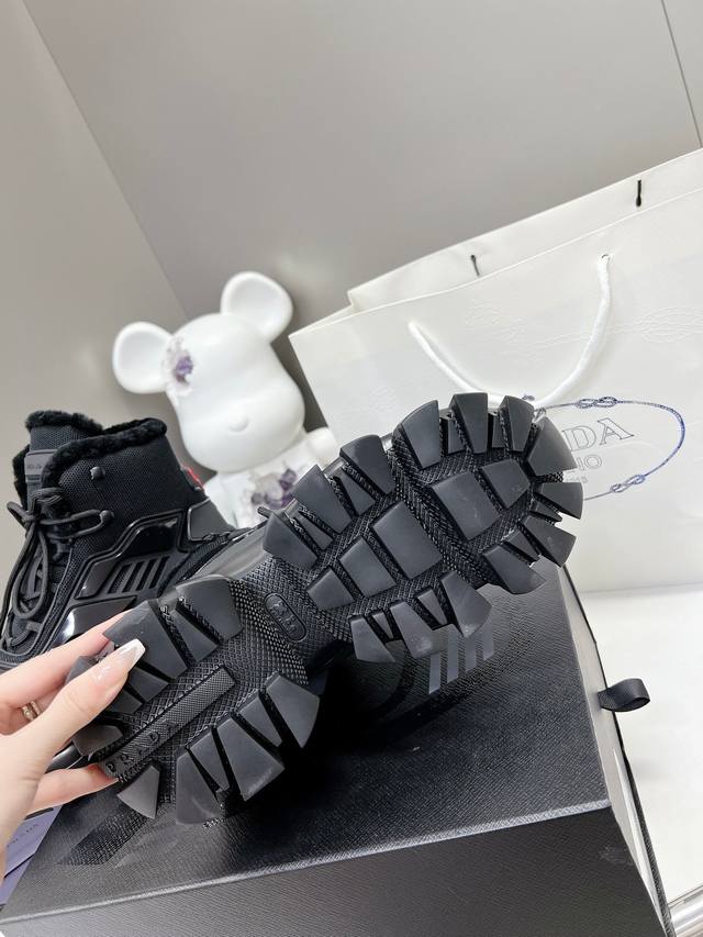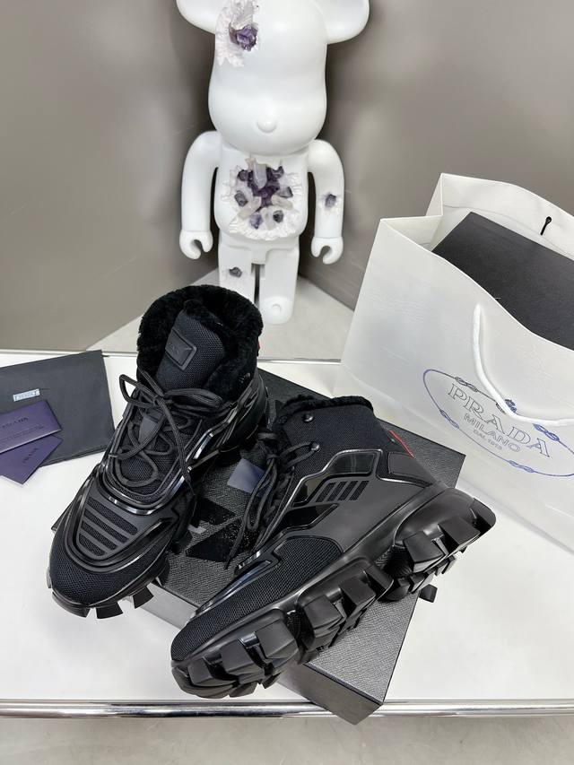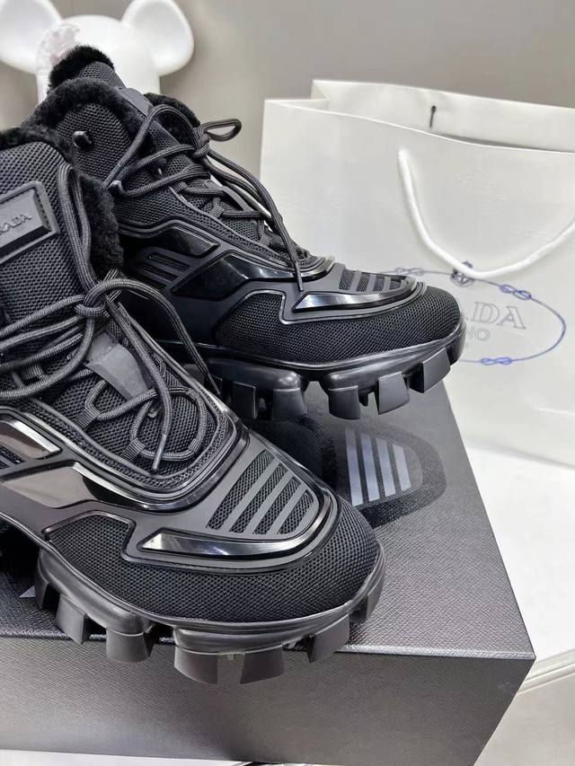 普拉达Prada顶级版运动鞋 鞋面进口飞织面料拼接漆皮, 羊皮内里+牛皮踮脚, 耐磨防滑轻便大底, 男女同款: 码数:35-47码,...