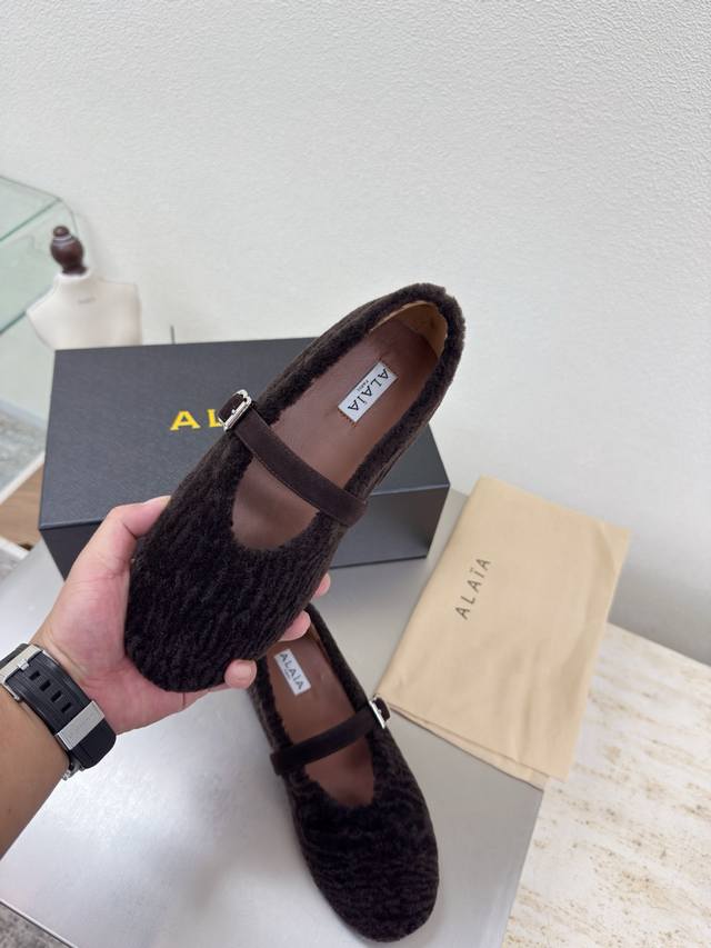 羊羔毛鞋面 玛丽珍单鞋 舒适温暖 Alaia 来自巴黎 一见倾心 咖啡色 阿莱娅还有另外性感的一面 配上不同款式,不同风格都能轻松驾驭,无论牛仔裤,西装裤,还是