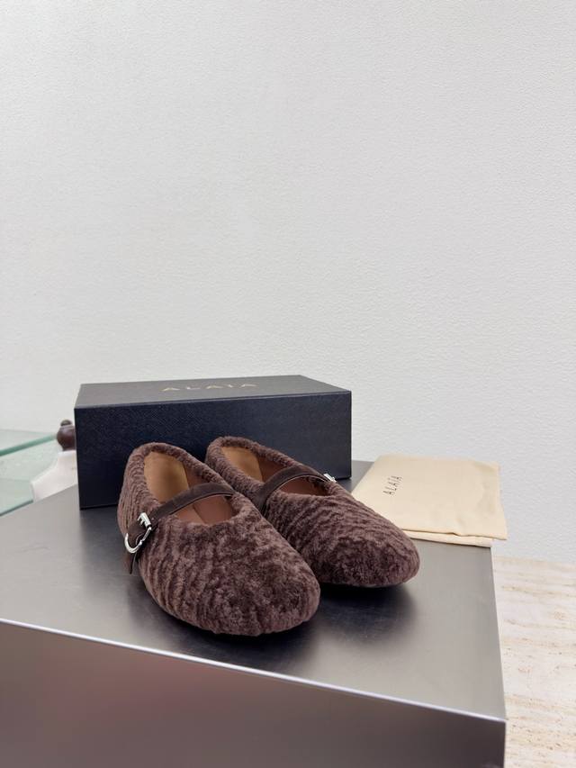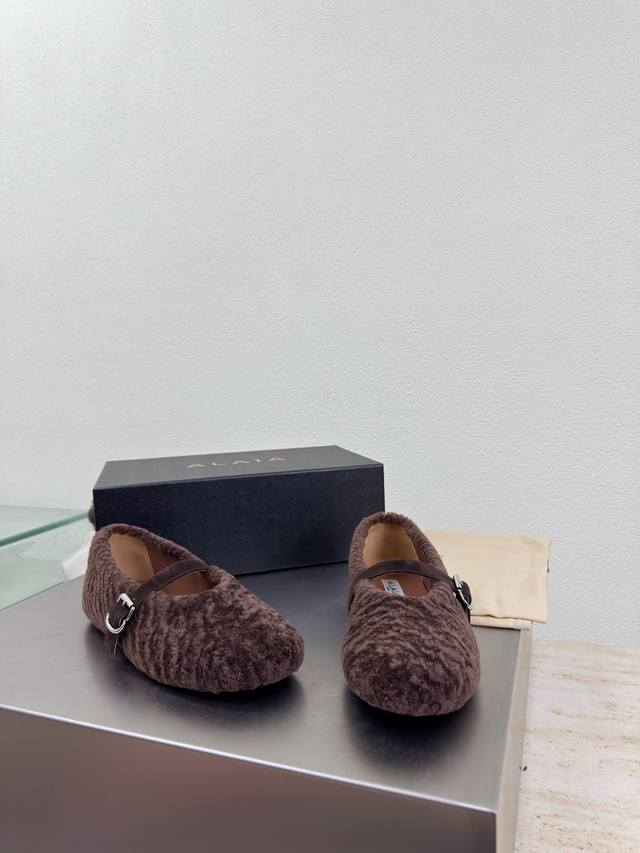 / 羊羔毛鞋面 玛丽珍单鞋 舒适温暖 Alaia 来自巴黎 一见倾心 浅咖啡 阿莱娅还有另外性感的一面 配上不同款式,不同风格都能轻松驾驭,无论牛仔裤,西装裤,还是