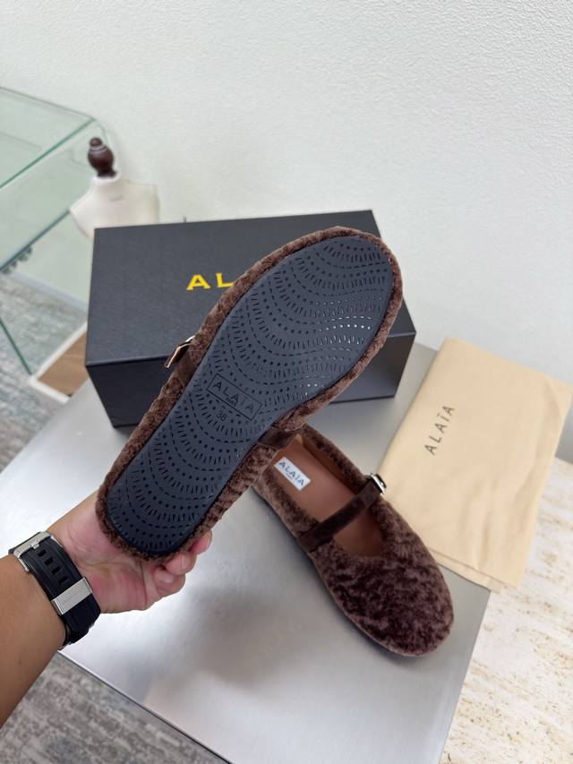 羊羔毛鞋面 玛丽珍单鞋 舒适温暖 Alaia 来自巴黎 一见倾心 浅咖啡 阿莱娅还有另外性感的一面 配上不同款式,不同风格都能轻松驾驭,无论牛仔裤,西装裤,还是