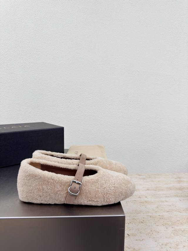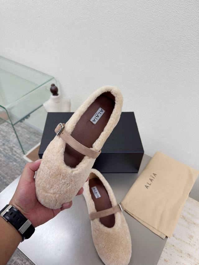羊羔毛鞋面 玛丽珍单鞋 舒适温暖 Alaia 来自巴黎 一见倾心 驼色 阿莱娅还有另外性感的一面 配上不同款式,不同风格都能轻松驾驭,无论牛仔裤,西装裤,还是百
