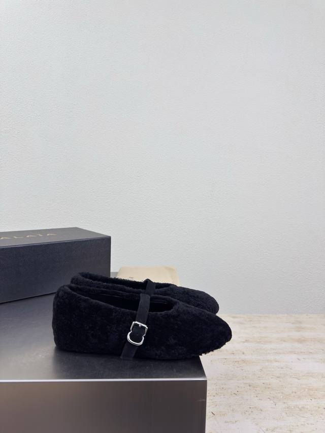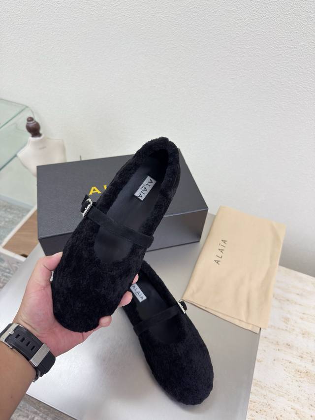 / 羊羔毛鞋面 玛丽珍单鞋 舒适温暖 Alaia 来自巴黎 一见倾心 黑色 阿莱娅还有另外性感的一面 配上不同款式,不同风格都能轻松驾驭,无论牛仔裤,西装裤,还是百