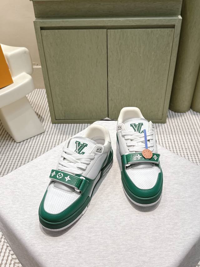 莞产代购级 官网同步盒包装 Louis Vuitton 25Ss 驴家的爆款!Trainer板鞋,每个人都必须入的款,绝不后悔! 超级百搭高级!什么衣服都好搭。最主要是超耐看的。 顶级代工厂P制程超严格!材料都是海外定制的顶级牛皮,皮纹质感都是原版的感觉 超高级,特别是鞋子折弯的时候出来的纹路,完完全全就是Zp的感觉! 大底也是我们私模定制的,独家把控,整个字体和凹凸感,真假难辨。 鞋面:原版牛皮 内里:原版网布 跟高:4.5Cm 大底:原版开模 Size:35-46 女40.41男38.45.46定做不