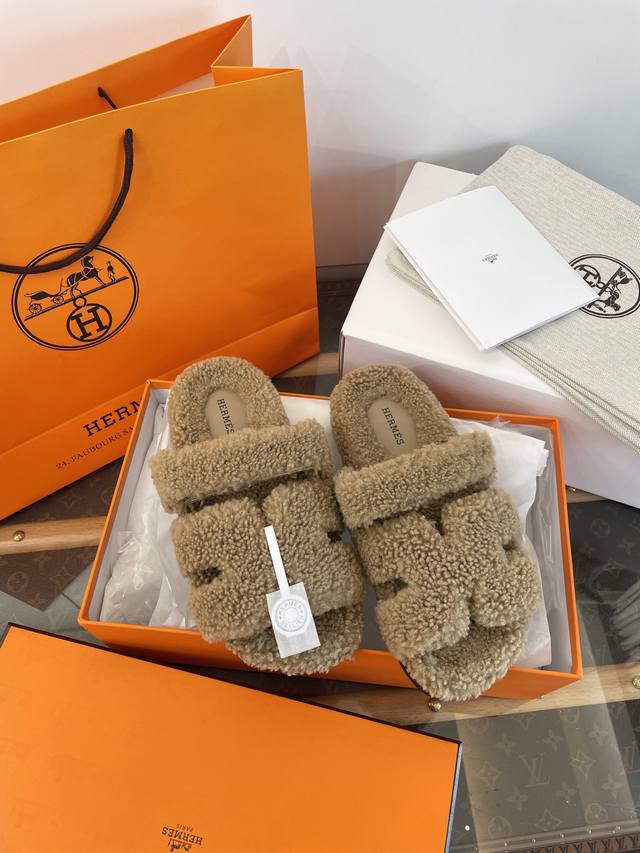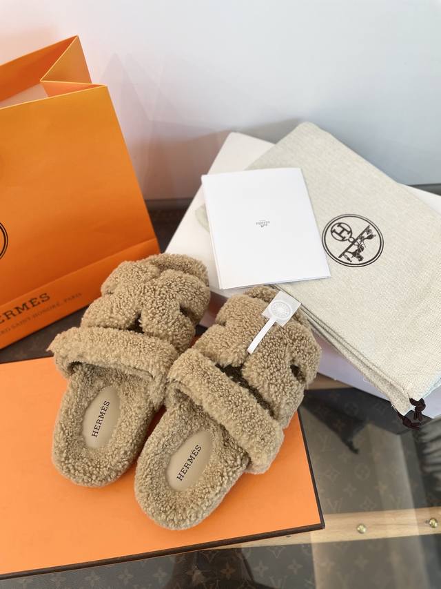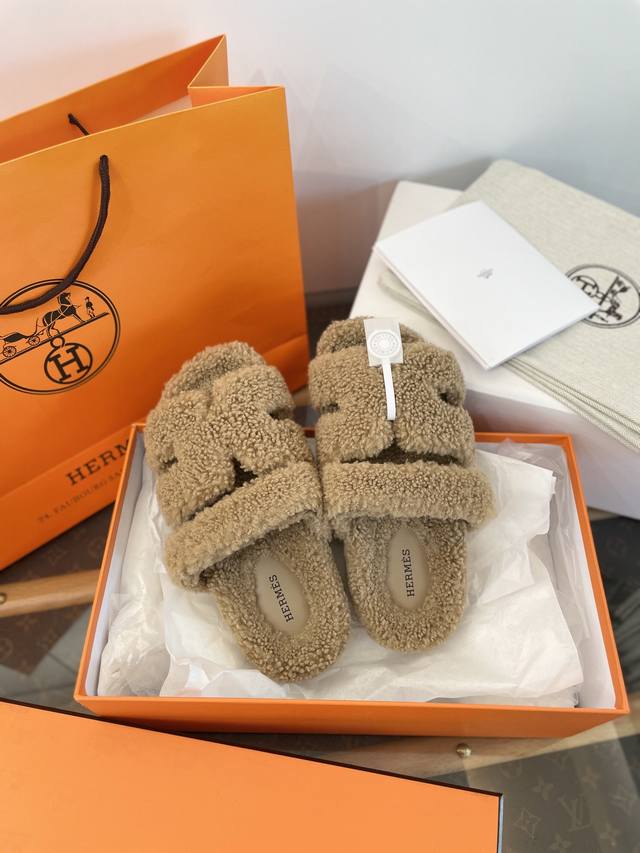 莞产 * 爱马家泰迪羊卷糕毛 二舅毛毛拖鞋 莞大厂顶级高端品质 *è懒人纯毛毛二舅拖鞋 颜值+舒适度+保暖 上脚软Fufu~超级舒服~一脚蹬_随性出门~懒人秋冬