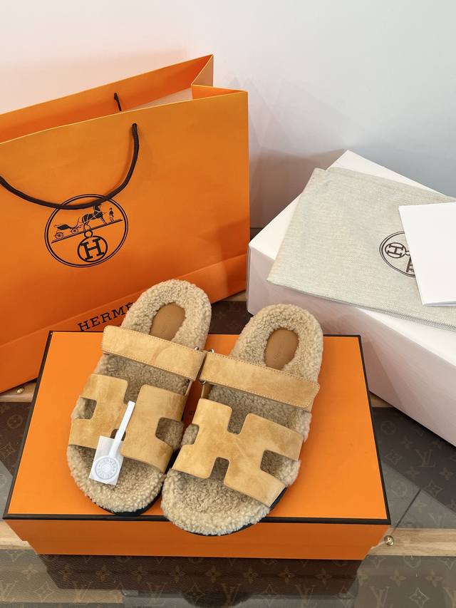 / 莞产 * 爱马家“麂皮面”泰迪毛二舅毛毛拖 莞大厂顶级高端品质 *è懒人毛毛二舅拖鞋 颜值+舒适度+保暖 上脚软Fufu~超级舒服~一脚蹬_随性出门~懒人秋冬必