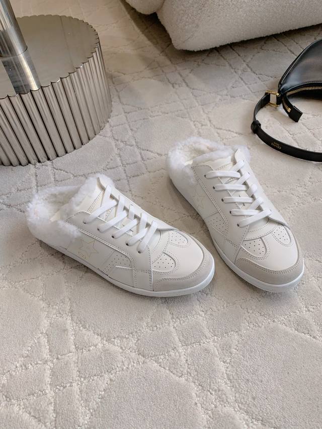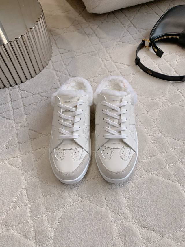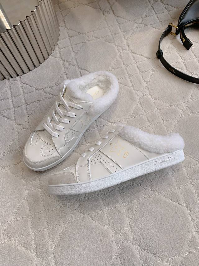 薄底 厚底 Dio* 新款羊毛保暖厚底半拖鞋 超级厚实保暖 柔软舒适 经典百搭款 鞋面牛皮 内里垫脚进口澳洲一体羊皮毛 原版开模大底 尺码35-39 40 41