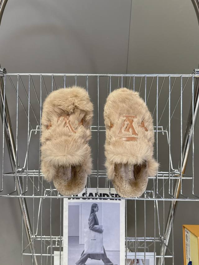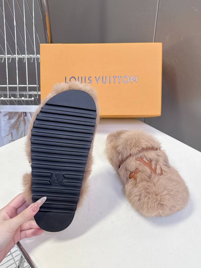 路易威登Lv秋冬最新款毛毛拖鞋~ 这双毛拖也是好好看!皮质的就是非常高级呀!!搭配秋冬的牛仔短裤 简直就是完美呀!穿上立马拥有理想的身高有没有! 大爱款,有时尚