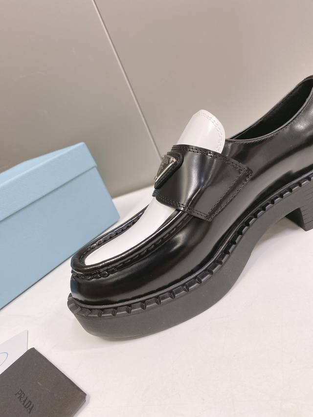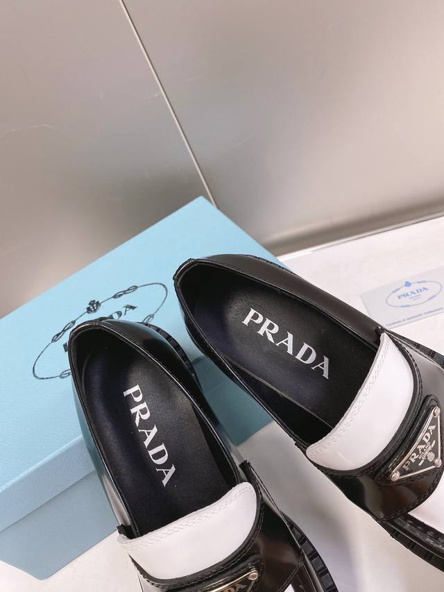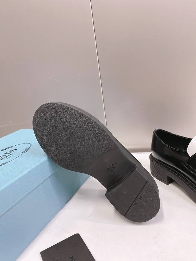 这个颜色只接订单 普拉达Ss22 P家 熊猫三角标乐福鞋 黑白配色非常醒目,春夏搭配很好看哦 甄选小牛皮材质,软胶底,鞋底有一定厚度,超显腿长!绝绝子 Size35-40