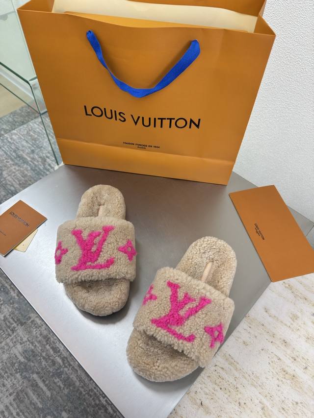 / 进口羊羔毛拖鞋 L驴超高性价比 包装 高品质 无瑕疵 5种配色 驼色羊羔毛 拼Logo羊毛Lv 打造 使得 Lv 仍能为创作者、青年玩家,提供惊艳和渴望。 5