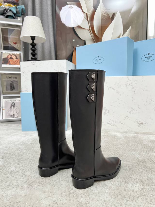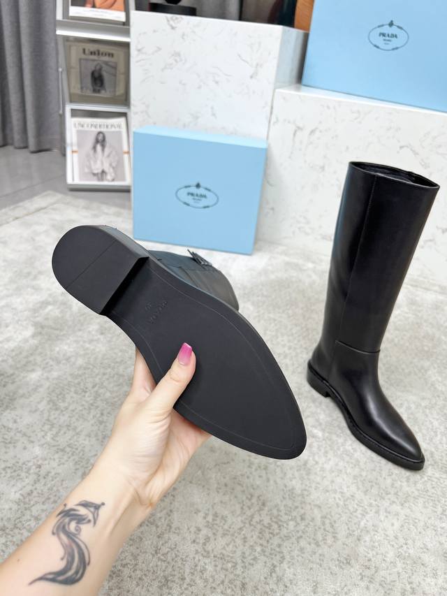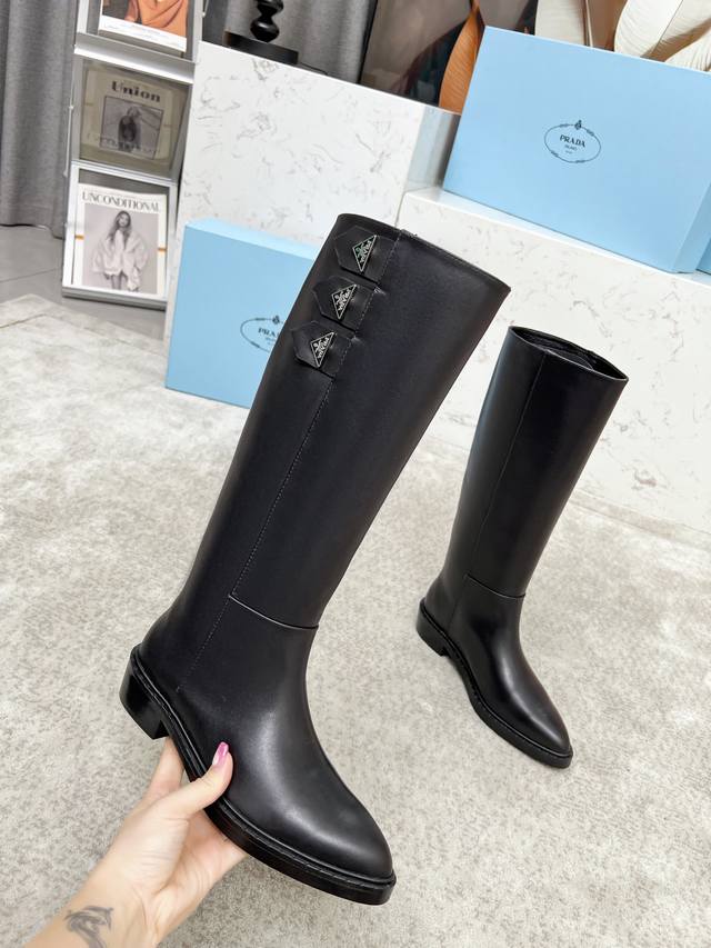 皮面 绒面 Prad* 25Ss普拉达经典三角标一脚蹬王炸女靴...
