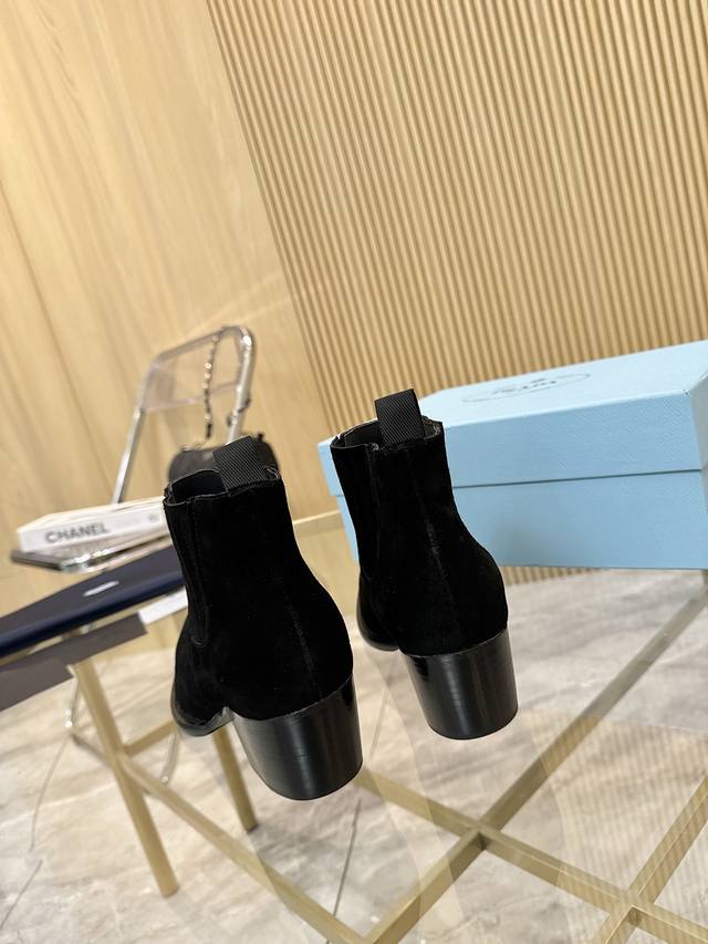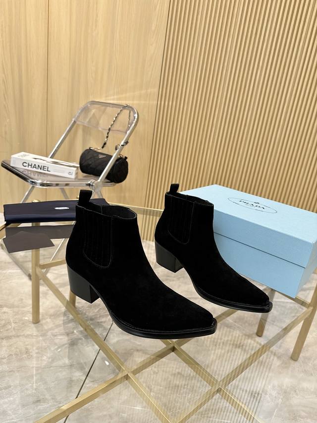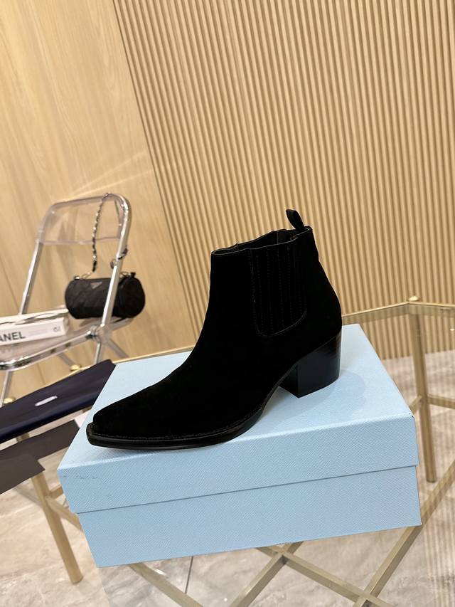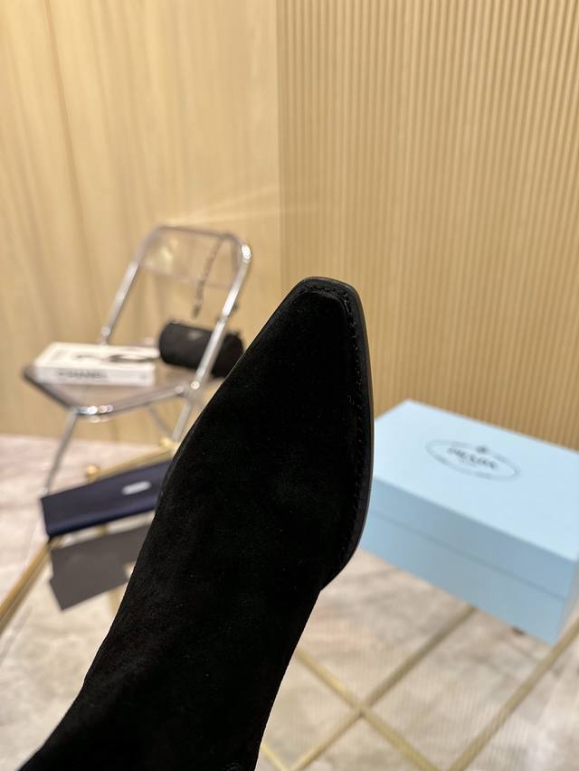 / 顶奢版本“Prada 普拉达”经典尖头靴 Prada能在重要场合用得上了,清新风带点小贵气的感觉,上脚非常完美显腿瘦气质这块刚好拿捏,穿搭配上此鞋,优雅大方晶莹
